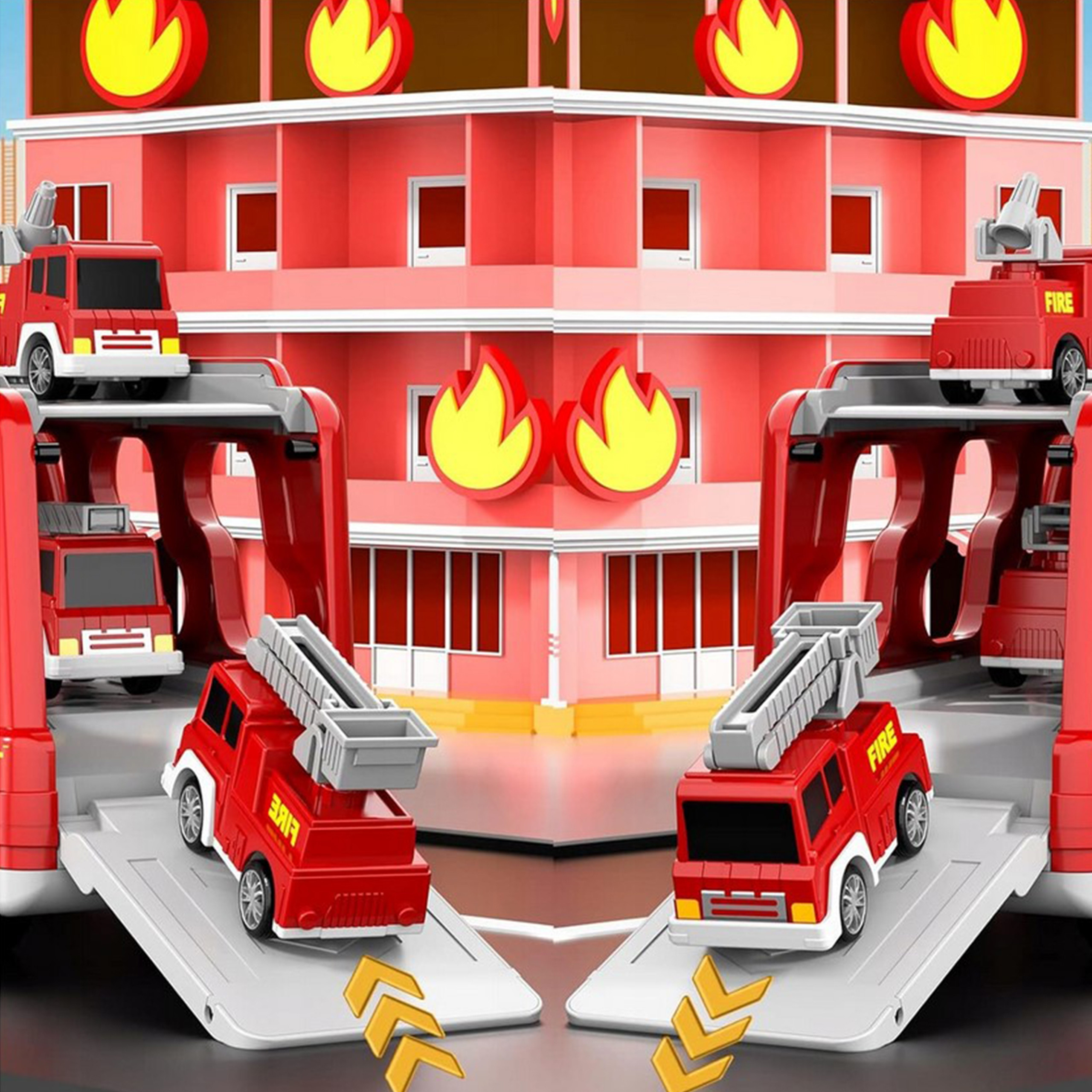 Veľká hasičská súprava kamión - odťahové vozidlo + 4 autíčka značky Woopie. Táto hračka 5 v 1 navrhnutá pre malých nadšencov hasičských vozidiel je dokonalou súpravou pre každého malého záchranára! Stlačte tlačidlo v hornej časti kabíny nákladného auta, aby ste videli jasné blikajúce svetlá a počuli realistické sirény, veľmi atraktívne pre deti. Sada obsahuje veľké transportné auto a štyri hasičské vozidlá: hasičské auto, rebríkové auto, helikoptéru, postrekovač a SUV. Každé vozidlo má pohyblivé prvky, vďaka ktorým sa bude vaše dieťa počas záchranných operácií cítiť ako skutočný hrdina!