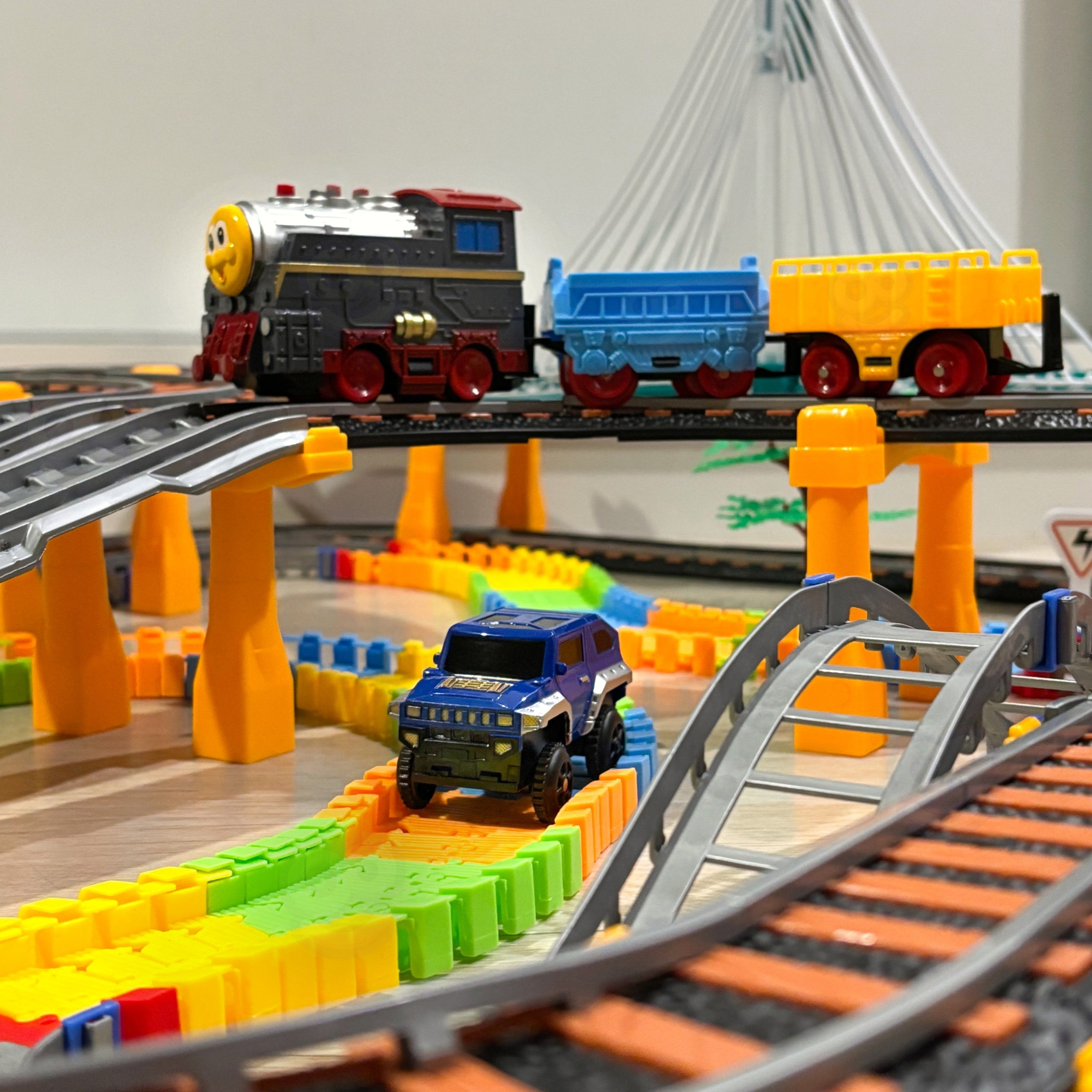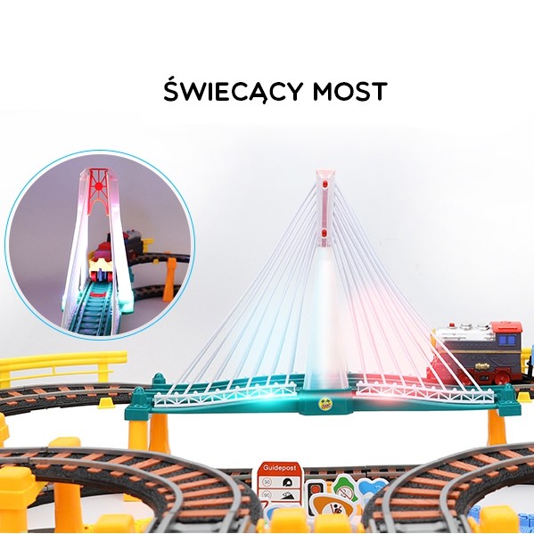 Nádherná závodná autodráha so železnicou, elektrickým vláčikom a autom od spoločnosti WOOPIE bola vytvorená s ohľadom na malých fanúšikov automobilových pretekov! Ďalšou atrakciou súpravy je svietiaci most. Vozidlá sa pohybujú po samostatných tratiach, vďaka čomu je táto úžasná sada hračkou 2 v 1. Vláčik s 2 vagónmi do ktorých môže naložiť malý náklad. Trate sú nezávislé - môžete jazdiť vlakom aj autom.