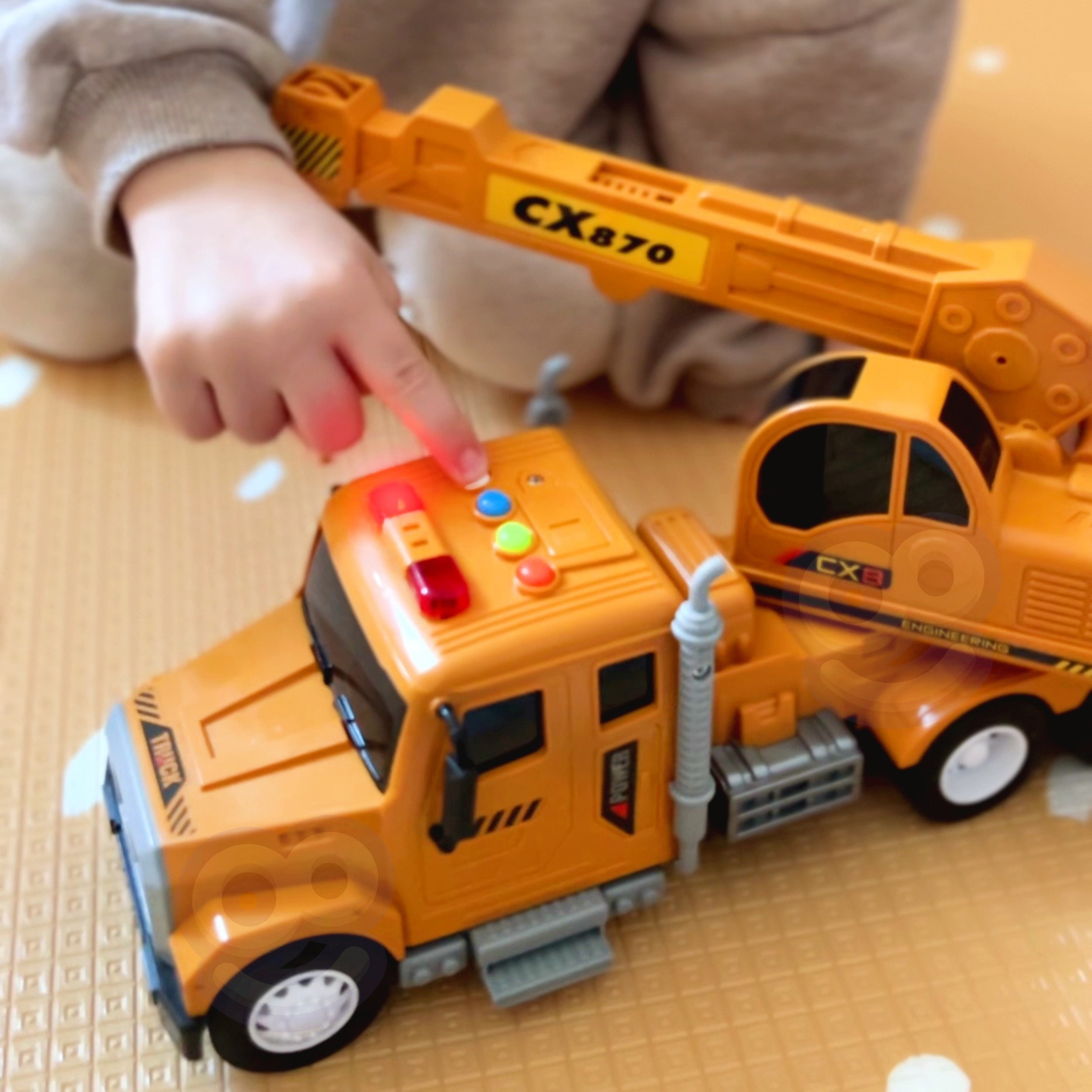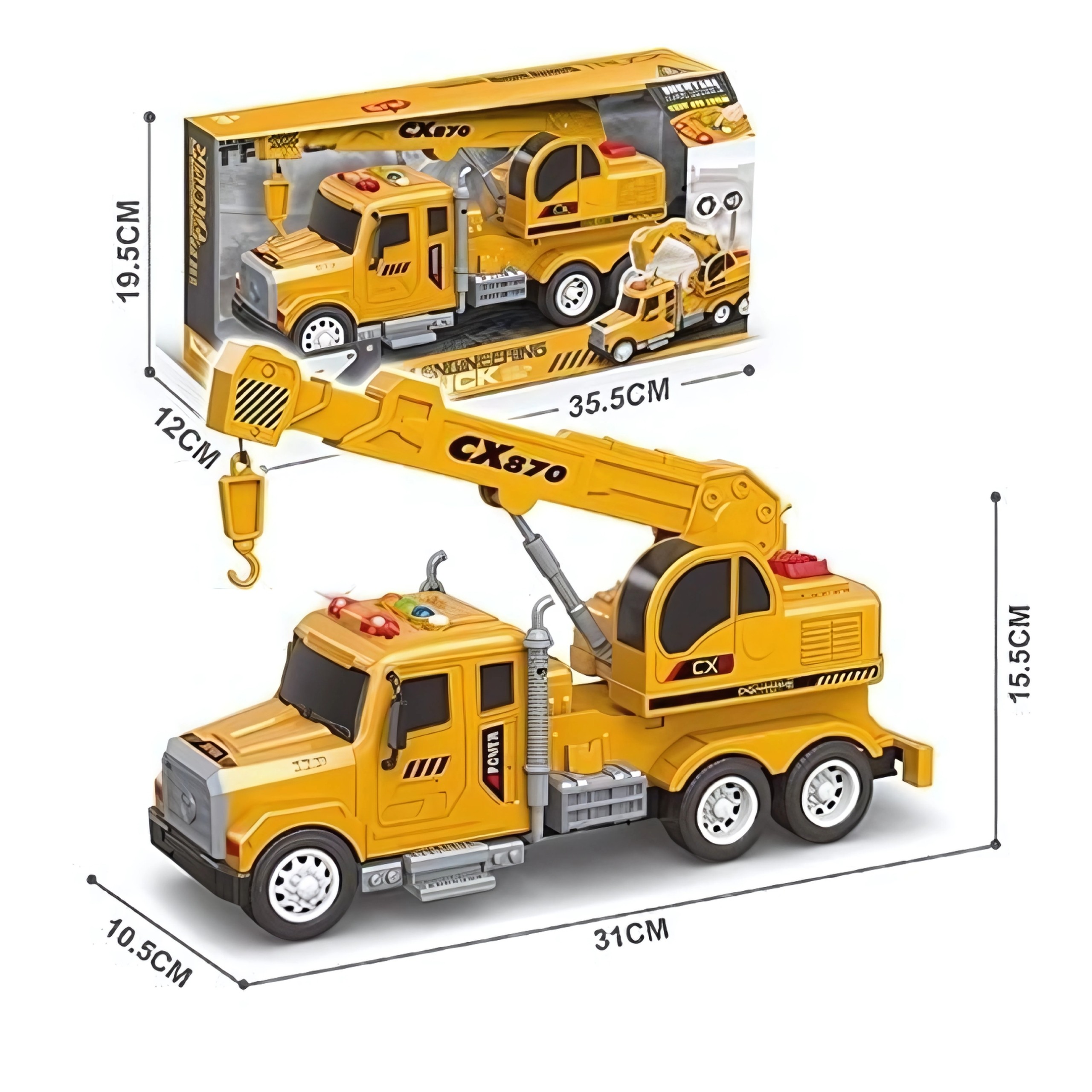 Interaktívny žeriav s pohyblivým hákom od spoločnosti WOOPIE urobí z každej hry dieťaťa úžasné dobrodružstvo! Vybavený zvukmi, svetelnými efektami a pohyblivými prvkami poskytne hodiny kreatívnej hry. Žeriav má mnoho funkcií ako: nastaviteľná výška a dĺžka ramena, možnosť manipulácie s lanom háku a svetlami na streche ako v skutočnom žeriave. Hračka je vyrobená v mierke 1:14 a každý prvok je starostlivo prepracovaný!