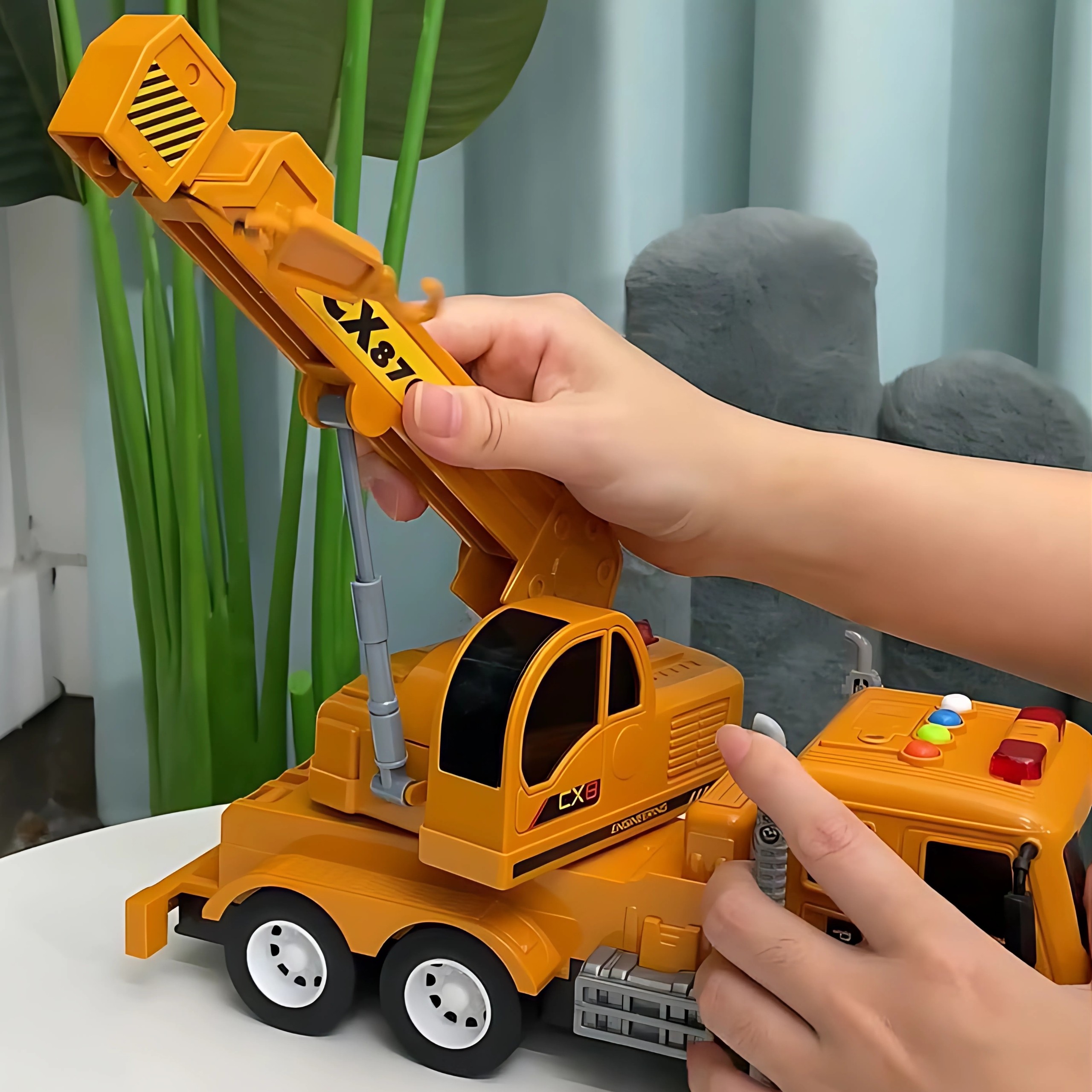 - Skutočný žeriav - vyrobený v mierke 1:14 s prepracovanými detailmi.