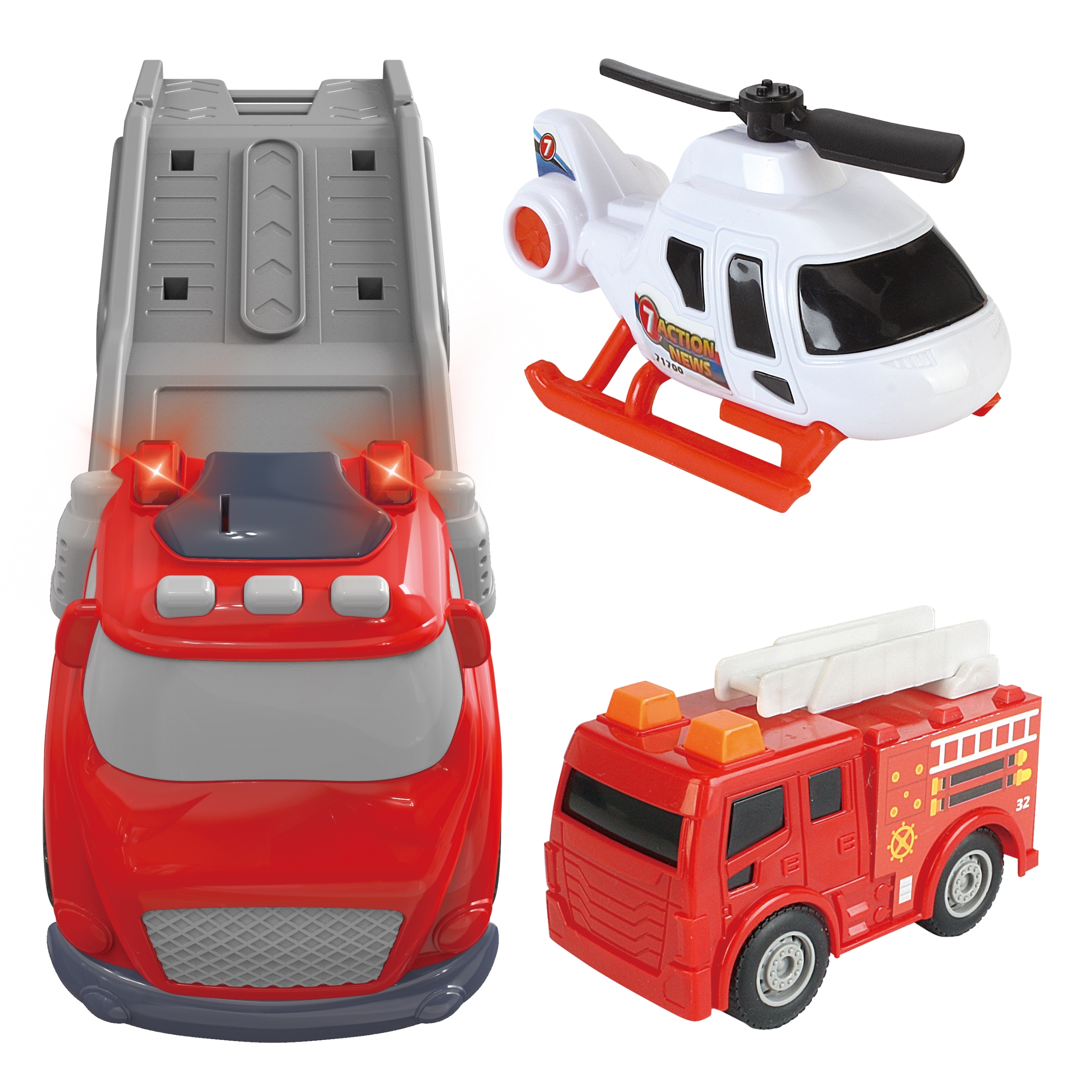Hasičské auto zo série CITY TRUCK umožní vášmu dieťaťu hrať sa na hasiča. Sada je vyrobená z vysokokvalitných materiálov a pozostáva z veľkého červeného nákladného auta s odťahovkou, vrtuľníka a malého hasičského auta. Svetelné a zvukové efekty urobia zábavu ešte realistickejšou a vzrušujúcejšou. Toto je perfektná sada pre kreatívnu hru s hasičom alebo záchranárom.