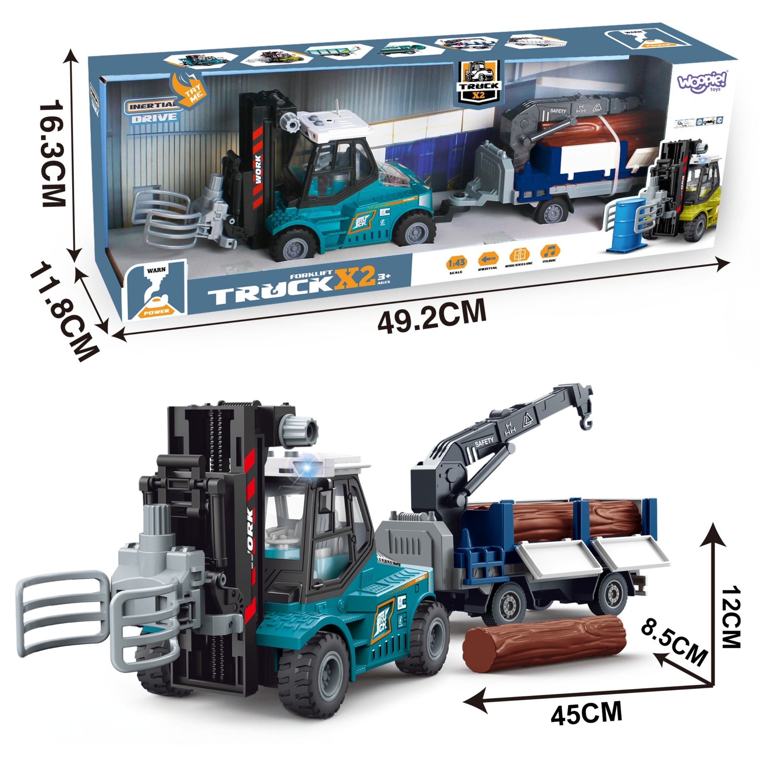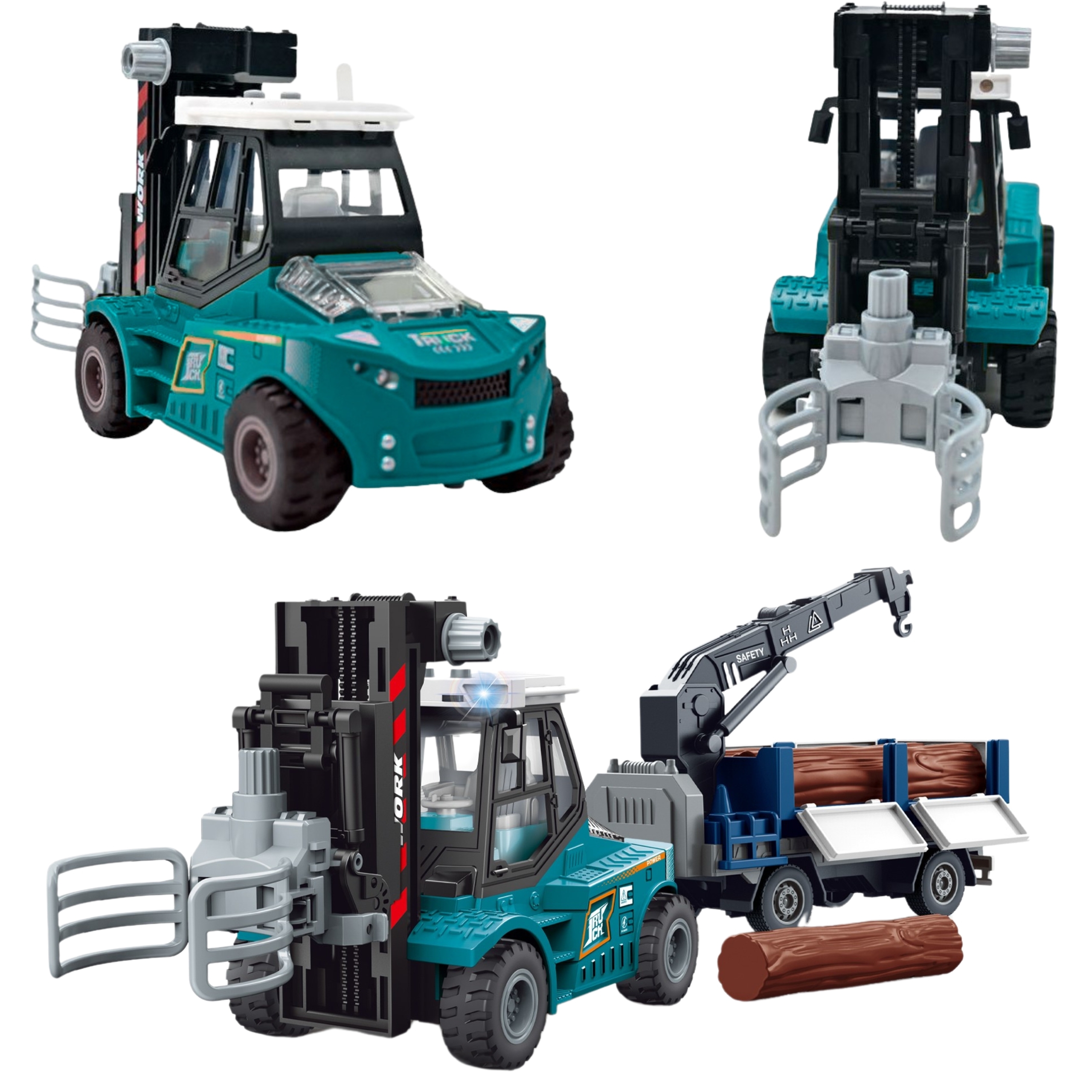 WOOPIE Vysokozdvižný vozík s drapákom a prívesom na drevo | so zvukmi a svetlami