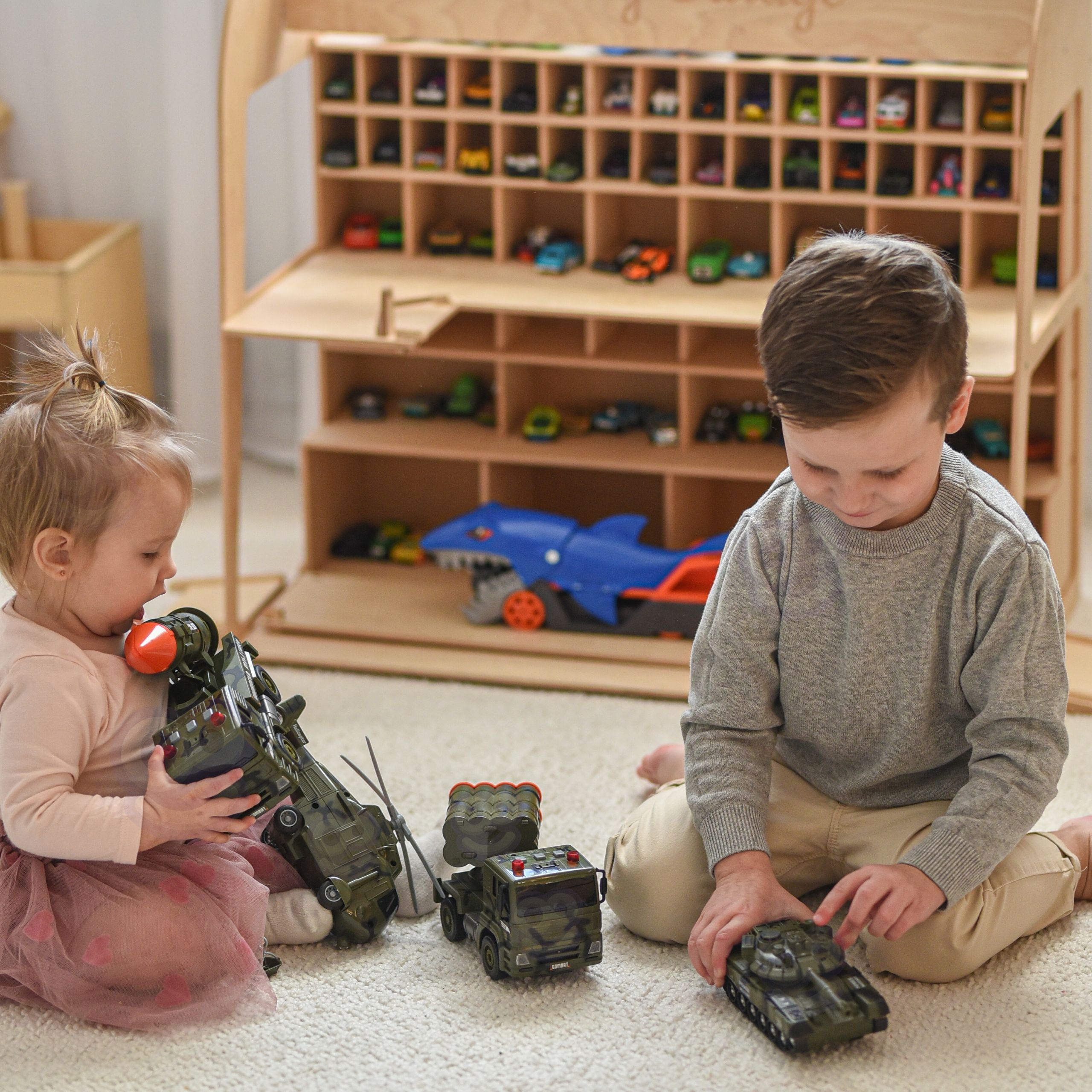 To najlepšie však prichádza po stlačení tlačidiel. Celá flotila ožíva vďaka svetelným a zvukovým efektom. Burácanie motorov a blikanie svetiel vtiahne deti do deja, či už organizujú záchrannú misiu s vrtuľníkom, alebo bránia pevnosť pomocou ťažkej techniky. Vďaka pohyblivým častiam, ako sú otočné veže či sklopné rampy, sa dieťa stáva skutočným veliteľom.