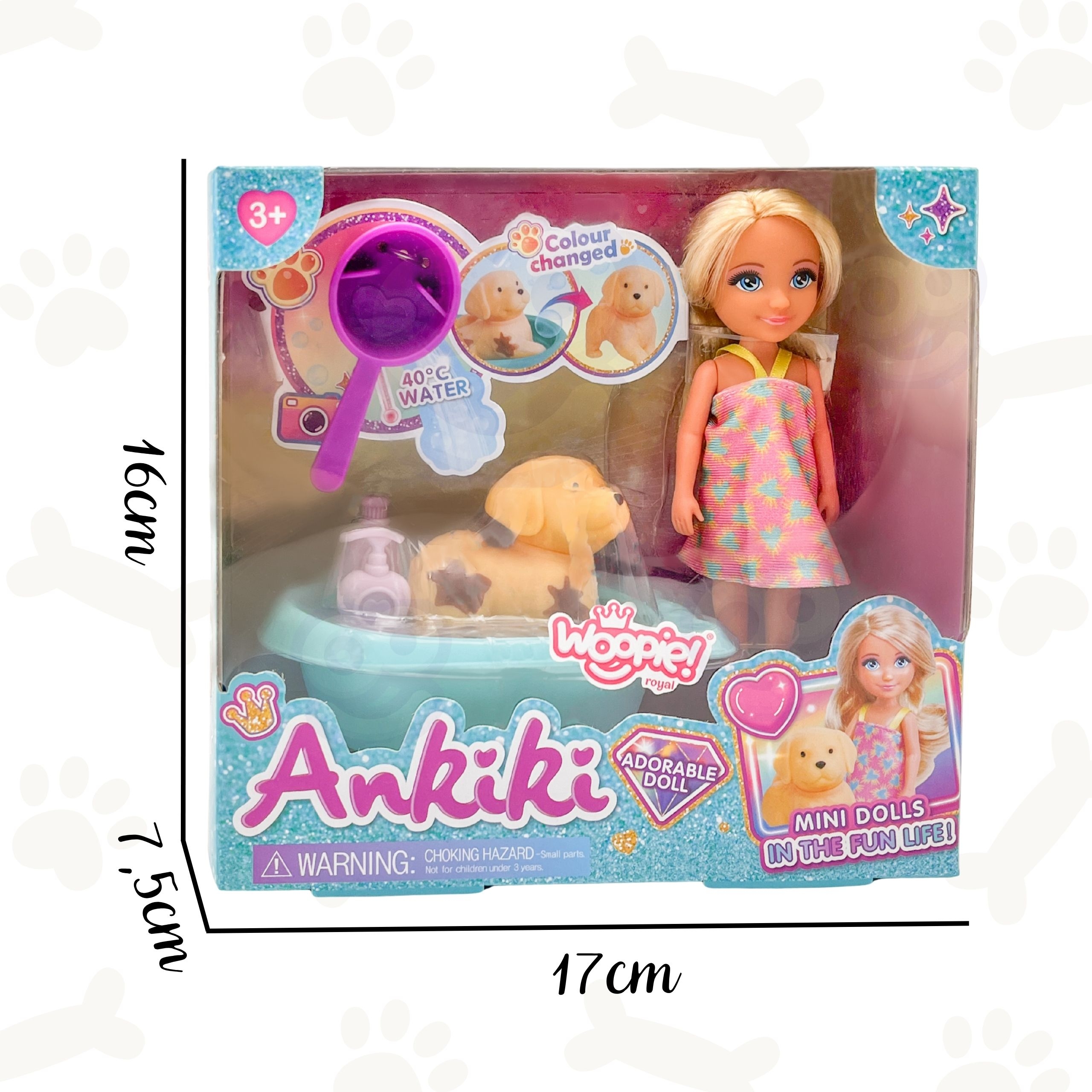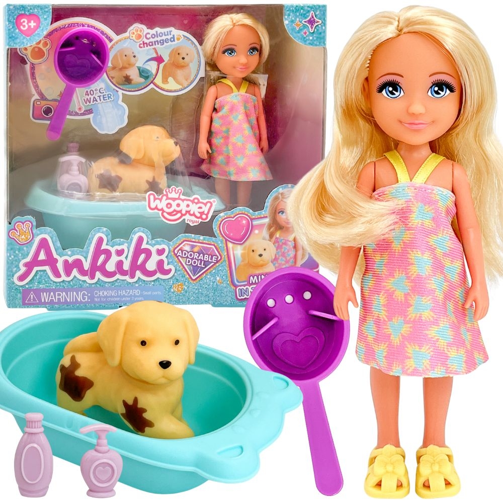 Objavte rozkošnú sadu Kúpanie psíka z exkluzívnej kolekcie WOOPIE ROYAL! Tento jedinečný set je ideálnym darčekom pre každého malého milovníka zvierat od 3 rokov. Sada obsahuje roztomilú bábiku opatrovateľku a figúrku psíka, ktorý potrebuje poriadne vykúpať.