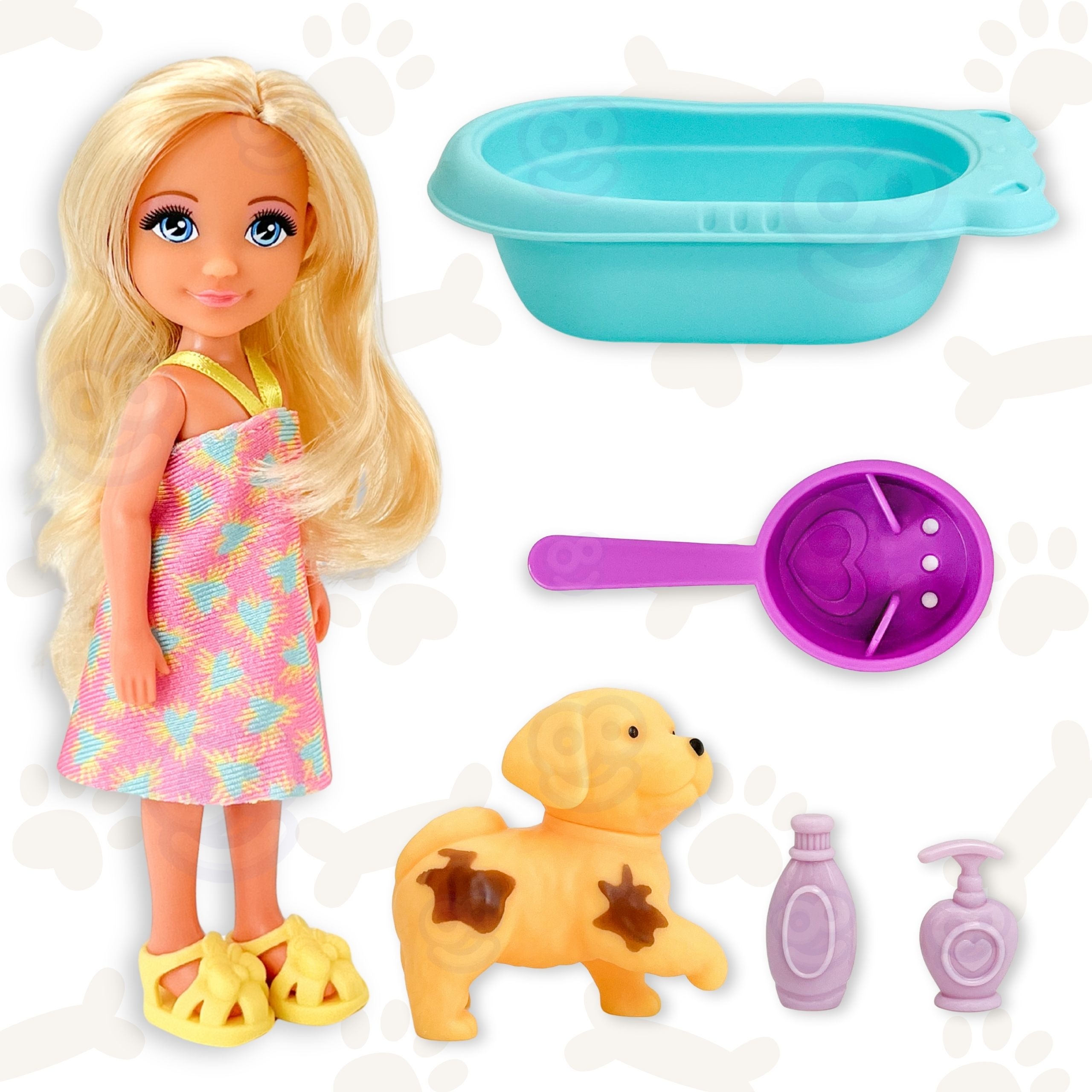 🛁 Kompletná sada na hranie: Balenie obsahuje bábiku, magického psíka aj vaničku s doplnkami. Hra sa môže začať ihneď po rozbalení.