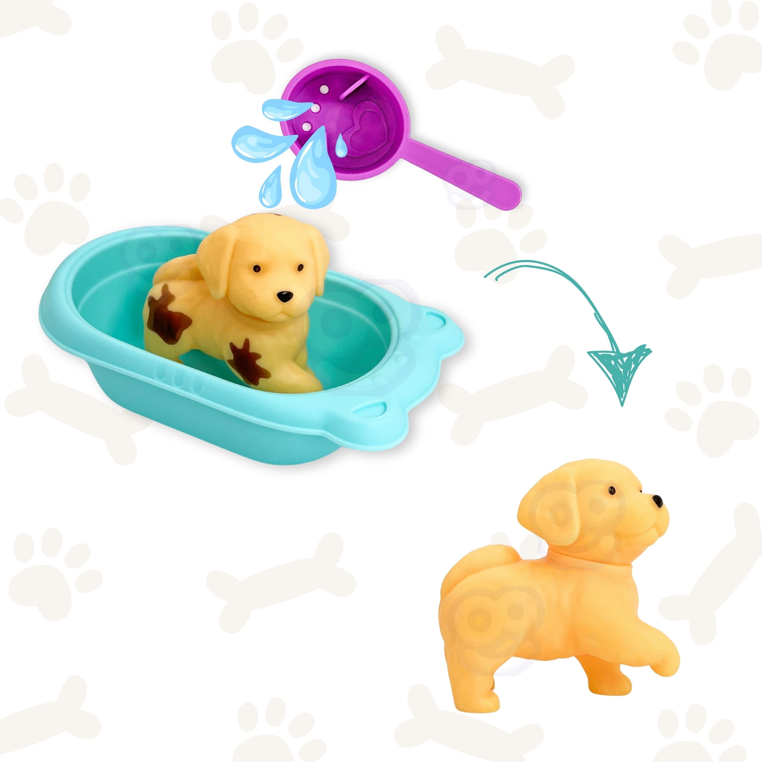 ✨ Magický "čistiaci" efekt: Psík, ktorému vo vode miznú škvrny, je fantastický prvok, ktorý deti uchváti a motivuje ich k hre.