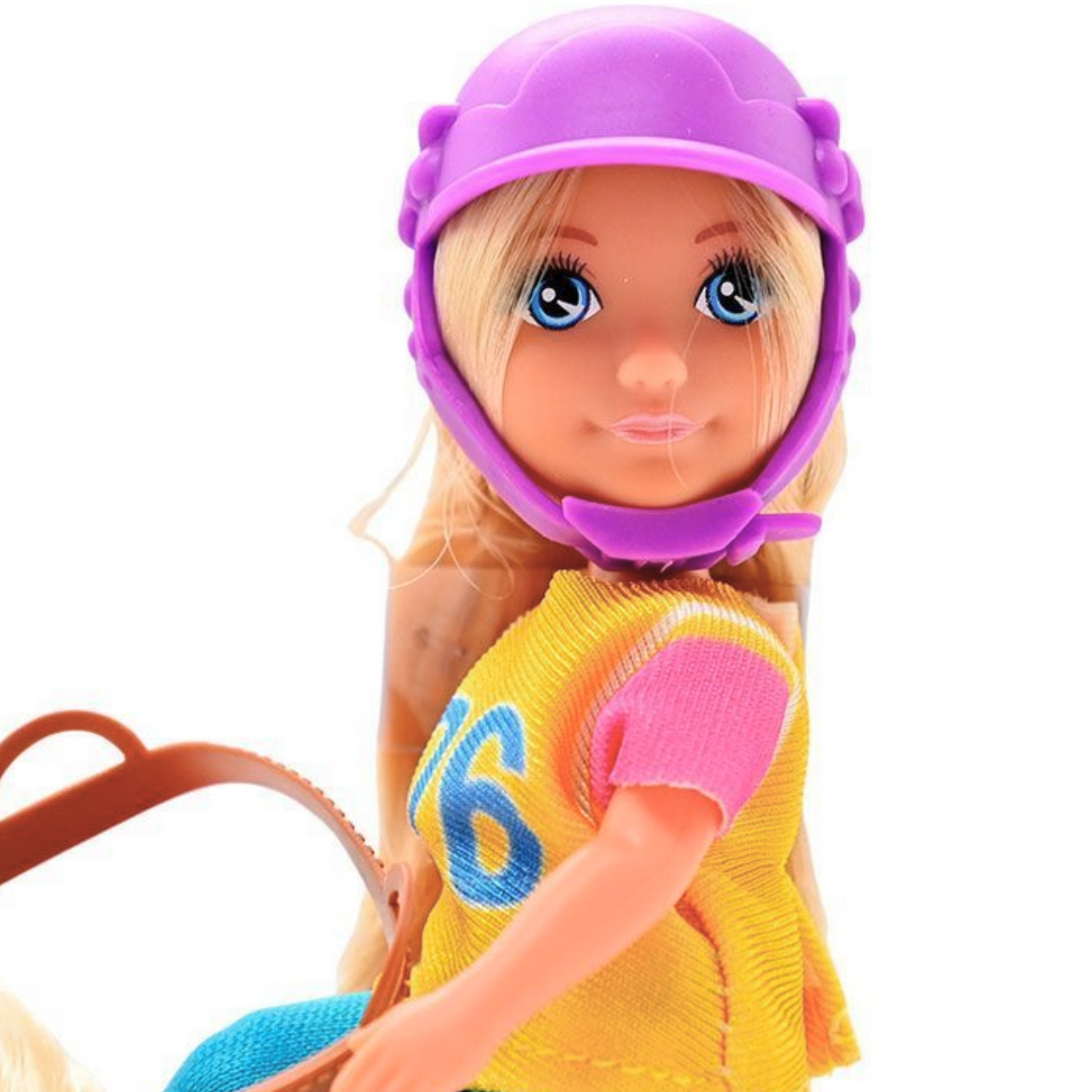 🏆 Kompletná sada na hru na preteky: Obsahuje všetko na okamžitú hru – bábiku v oblečení, koňa, helmu, sedlo, uzdu a víťaznú trofej.