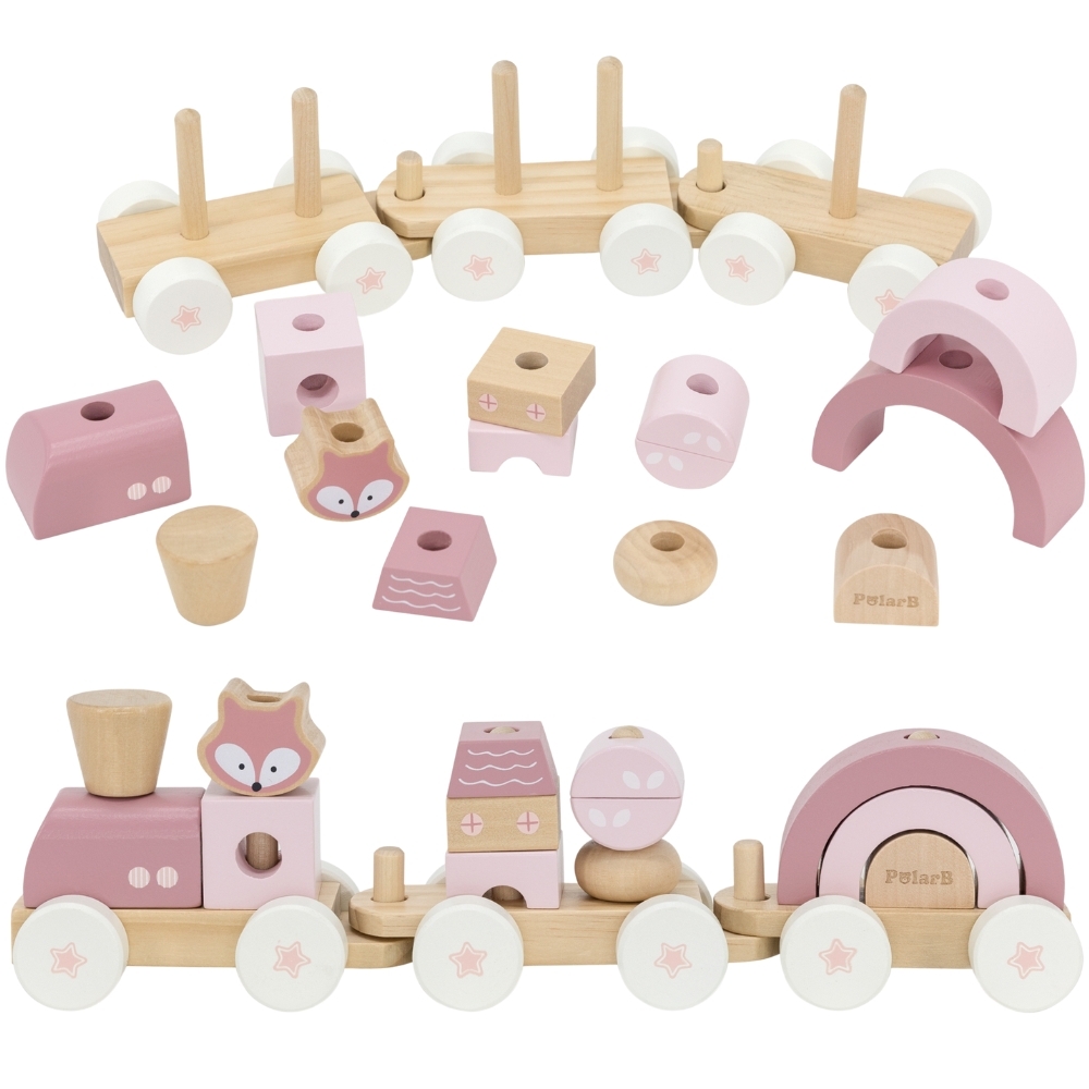 Očarujúci ružový vláčik Viga zo série PolarB je ideálna hračka, ktorá spája radosť z hry s rozvojom manuálnych zručností a kreativity. Skladá sa z 3 vozňov a 14 blokov rôznych tvarov, ktoré je možné ľubovoľne kombinovať. Vaše dieťa môže spájať vagóny, vytvárať zaujímavé štruktúry alebo sa s nimi samostatne hrať – možnosti sú nekonečné! Vďaka svojim jemným farbám a ľahko uchopiteľným prvkom je hračka ako stvorená pre najmenšie deti.