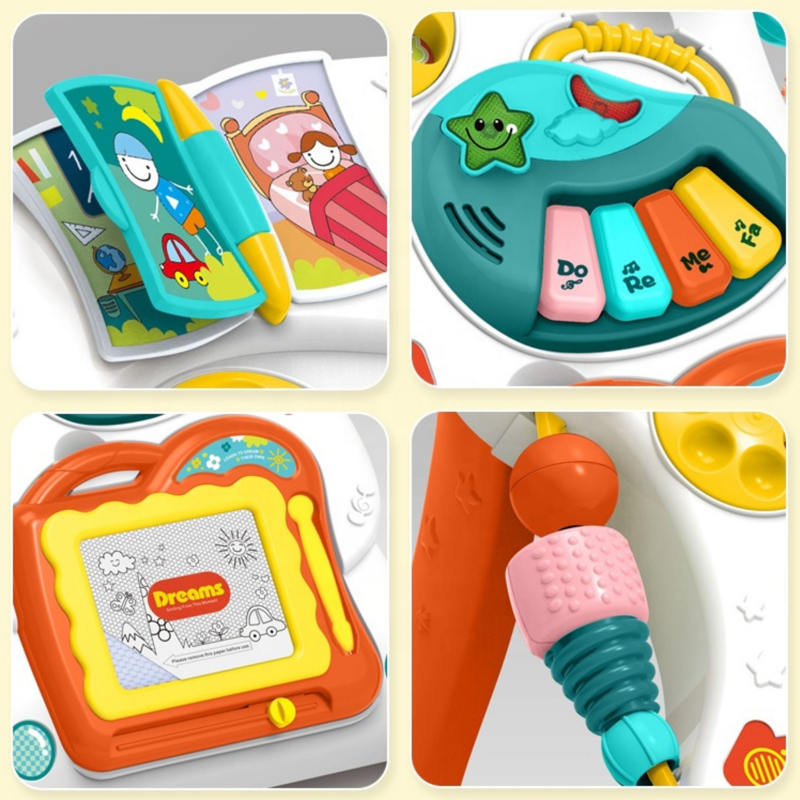 - prepisovateľná magnetická tabuľa na kreslenie (odnímateľná a funguje ako samostatná hračka),