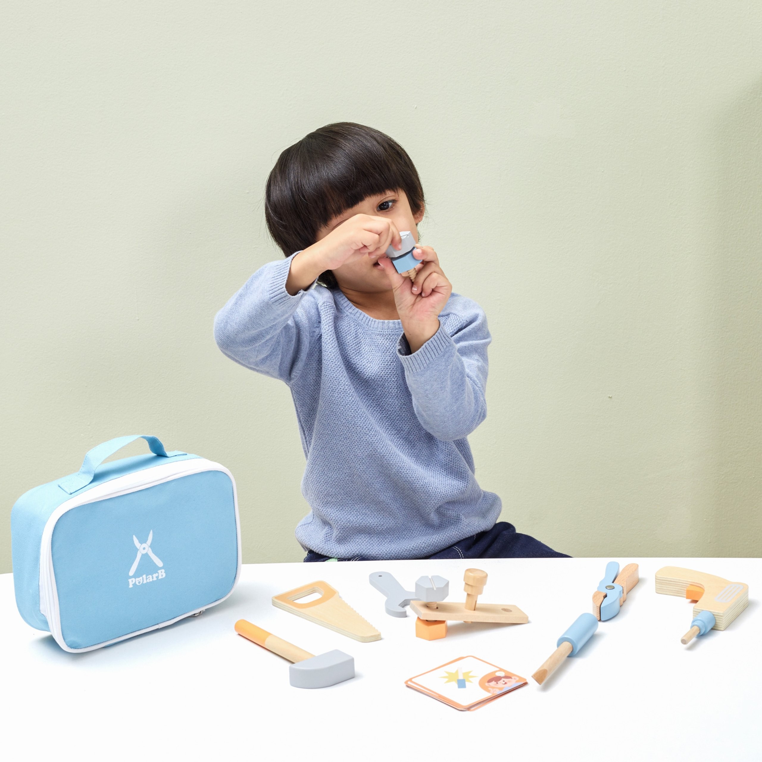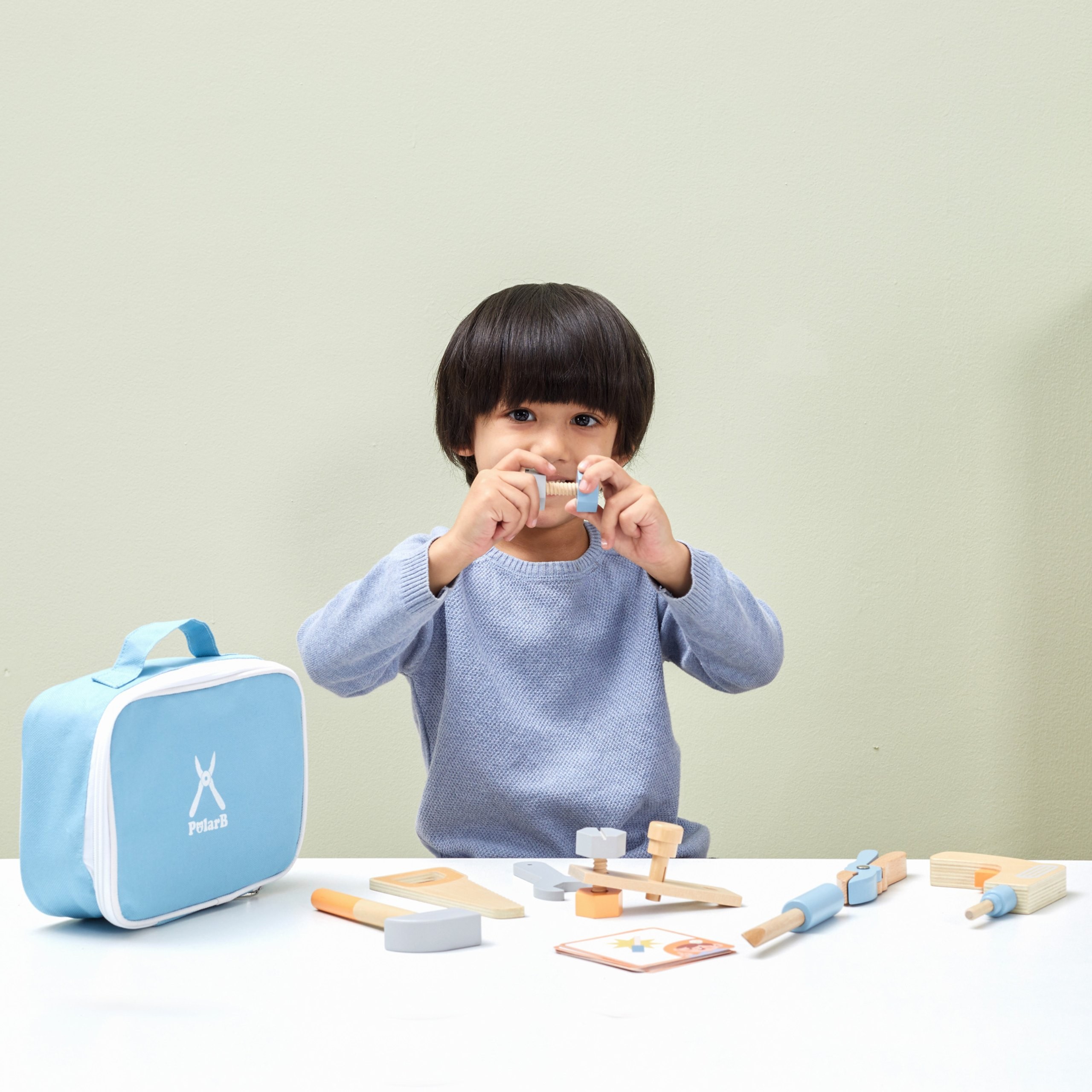 Deti zo všetkého najradšej napodobňujú svet dospelých. Keď ocko alebo dedko niečo opravuje, malí pomocníci chcú byť okamžite pri tom. S taškou na náradie Viga PolarB im doprajete ich vlastnú, absolútne bezpečnú a vizuálne prekrásnu výbavu. V šikovnej látkovej taške s úchytkami sa ukrýva celá dielňa – od dreveného kladivka, cez kľúč, pílku a skrutkovač, až po stavebné dieliky, skrutky a matice.