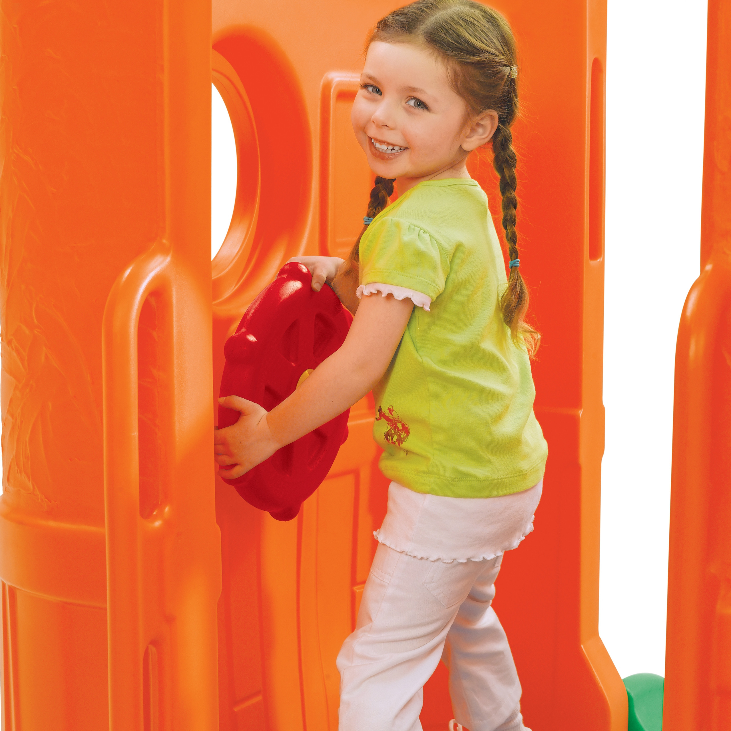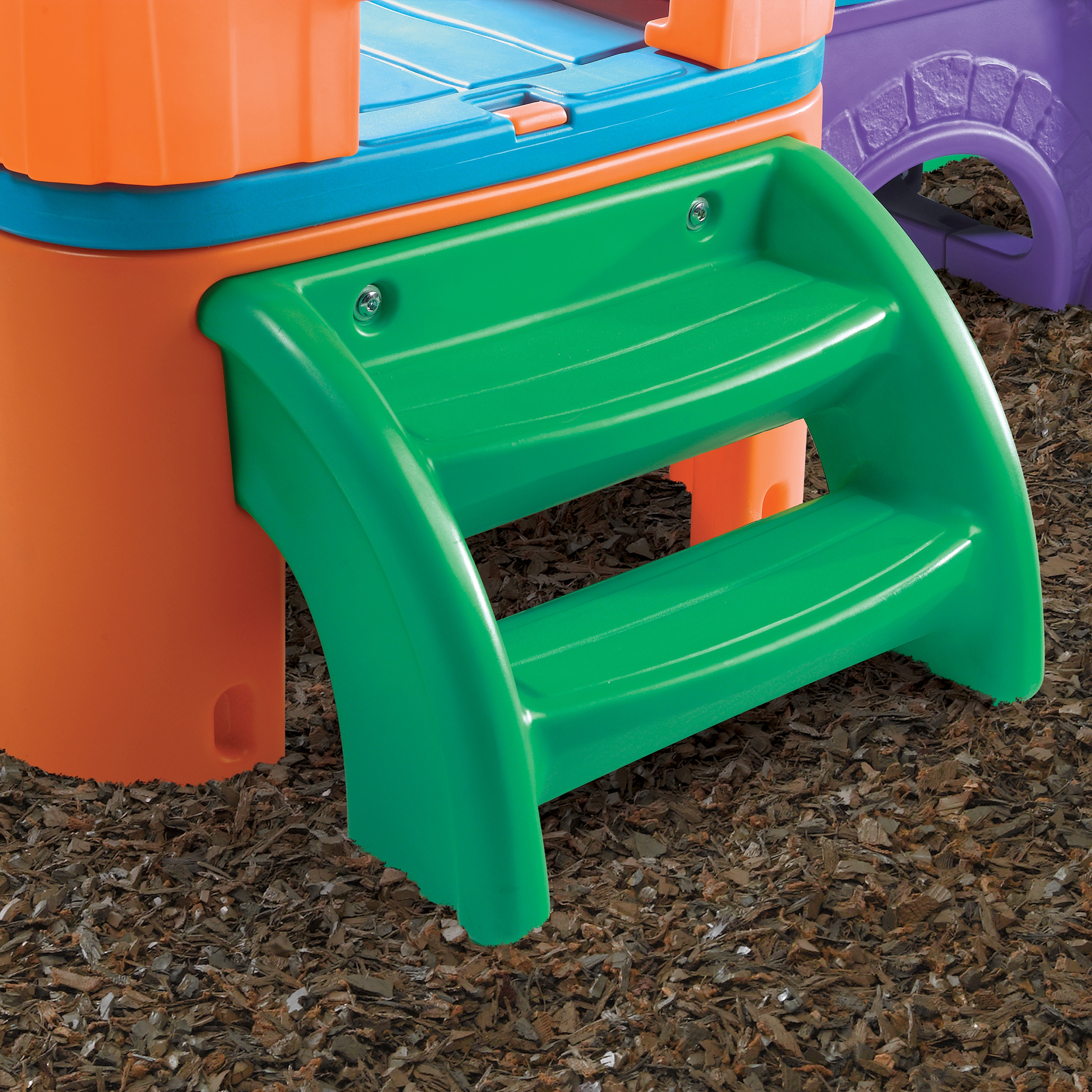- Domček má rebrík s veľkým schodiskom a zábradlím, okrúhle okno, strešné okno, kormidlo a malú a veľkú 98 cm šmykľavku