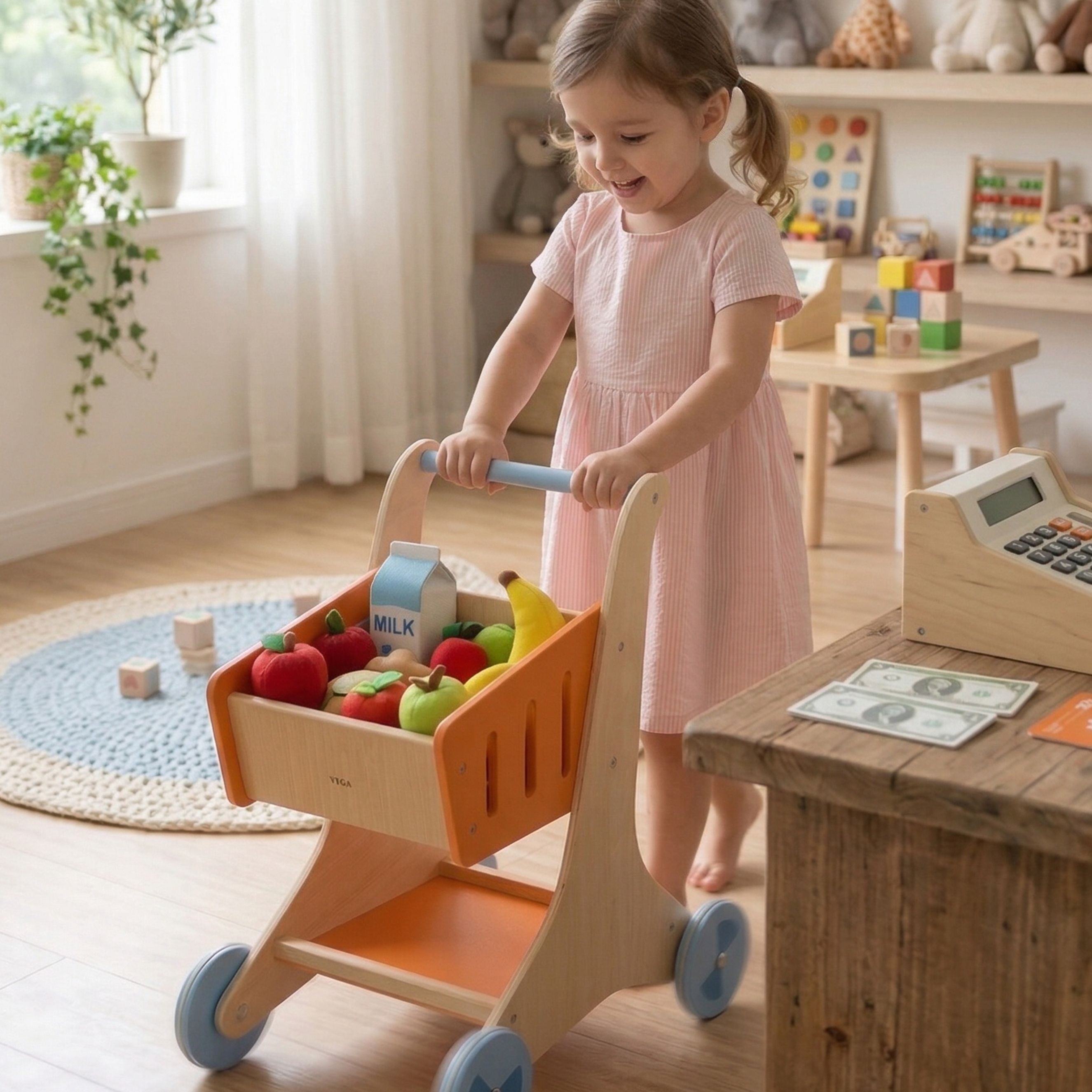 🛒 Multifunkčný dizajn (2v1): Slúži ako plnohodnotné aktívne chodítko pre neistých chodcov a neskôr ako dokonalá rekvizita pre hru na obchod.