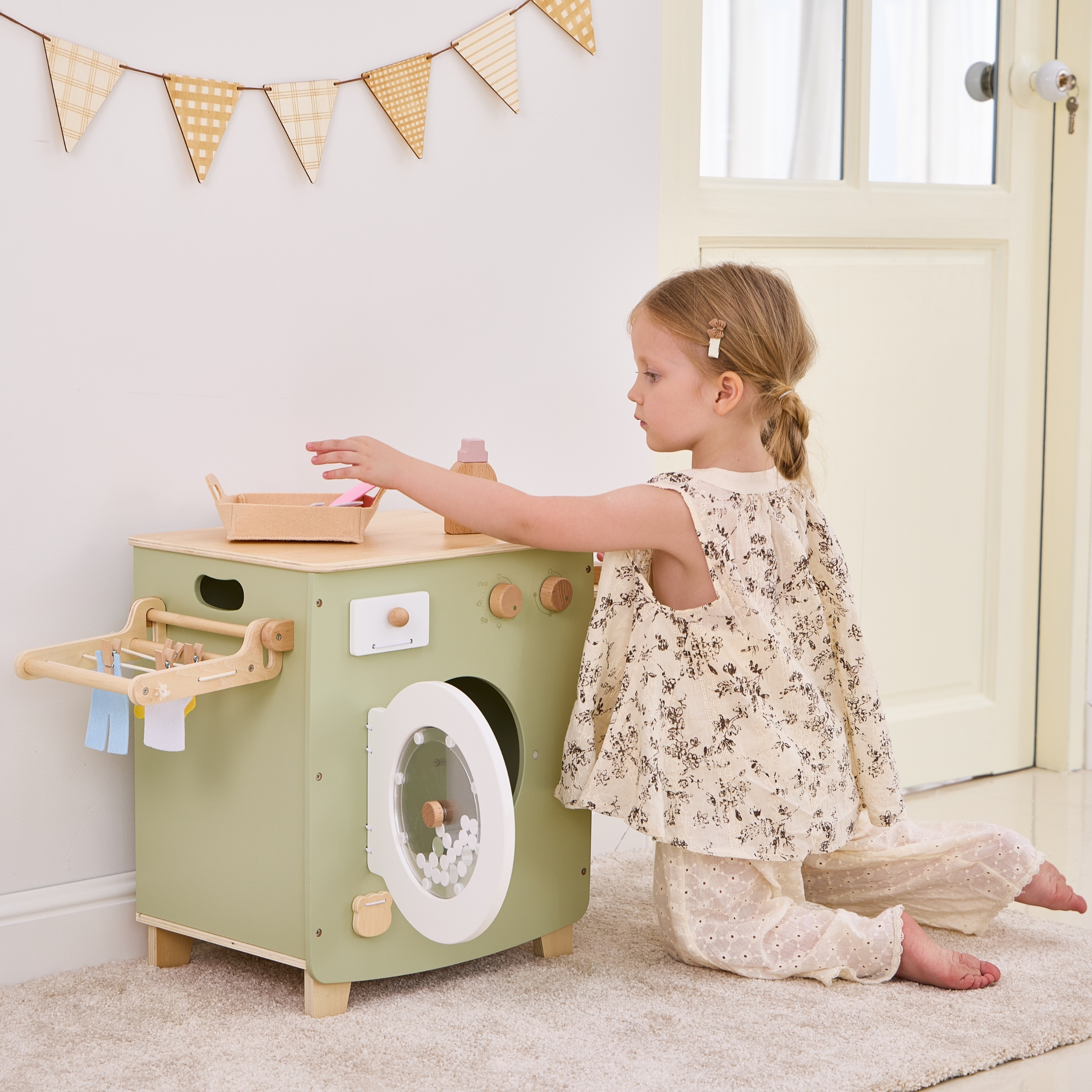 Drevená práčka zo série PolarB od renomovanej spoločnosti Viga je vynikajúcou vzdelávacou hračkou pre deti, ktorá umožňuje kreatívnu zábavu pri hraní rolí. Vďaka realistickému dizajnu a funkčným prvkom sa deti môžu vžiť do roly dospelých pri učení základných domácich prác. Produkt je ideálny pre deti od 3 rokov.