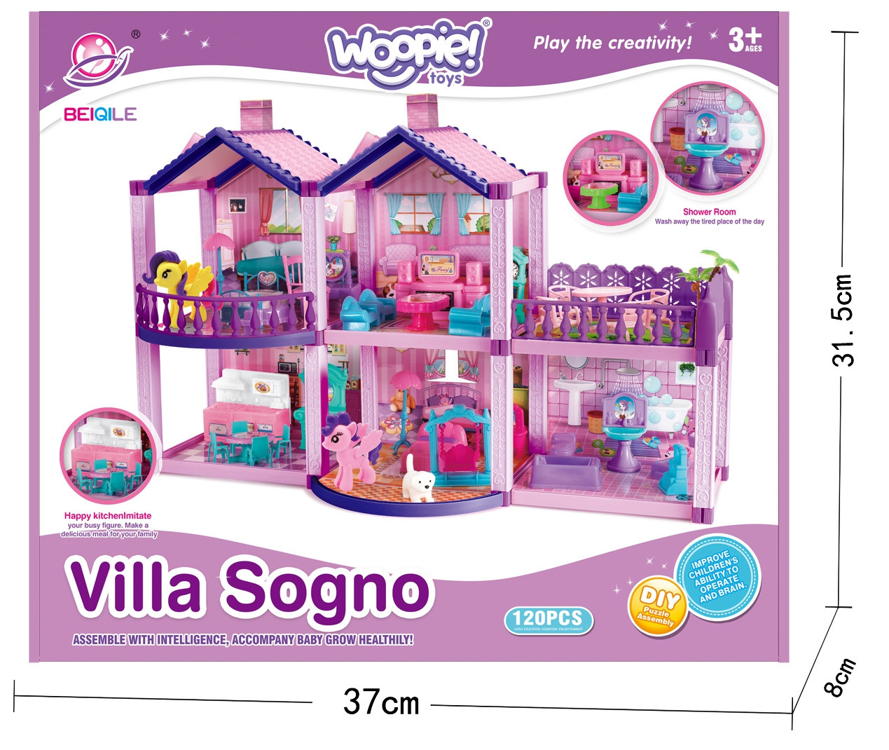 Jedinečný domček pre bábiky od spoločnosti WOOPIE, vyrobený z plastu je skvelým riešením na veľa hodín zábavy pre každé dievča a jej kamarátky. Nábytok zobrazený na fotografii je súčasťou balenia.