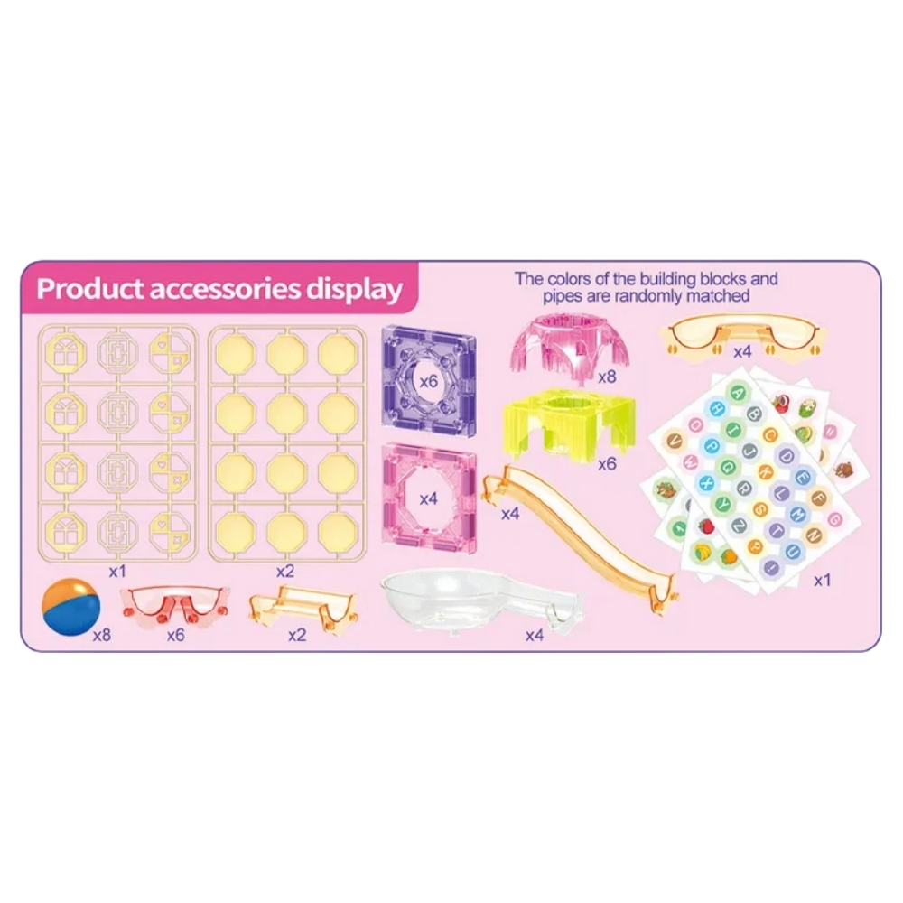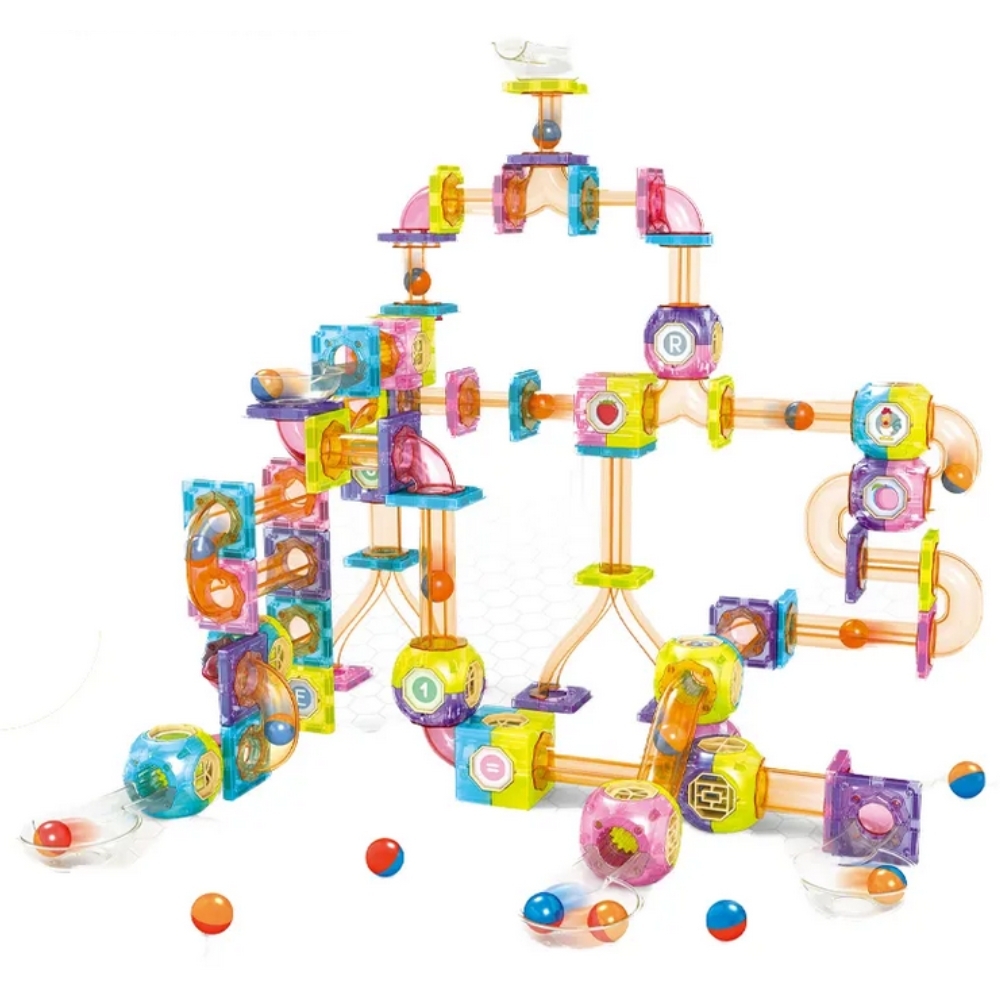 Objavte fascinujúci svet magnetických skladačiek s našou vzrušujúcou stavebnicou guľôčkových dráh! Táto mimoriadna sada obsahuje až 89 prvkov vrátane svetelných blokov, trubíc, magnetických prvkov a hracích loptičiek, ktoré vášmu dieťaťu poskytnú nezabudnuteľné chvíle kreatívnej hry!