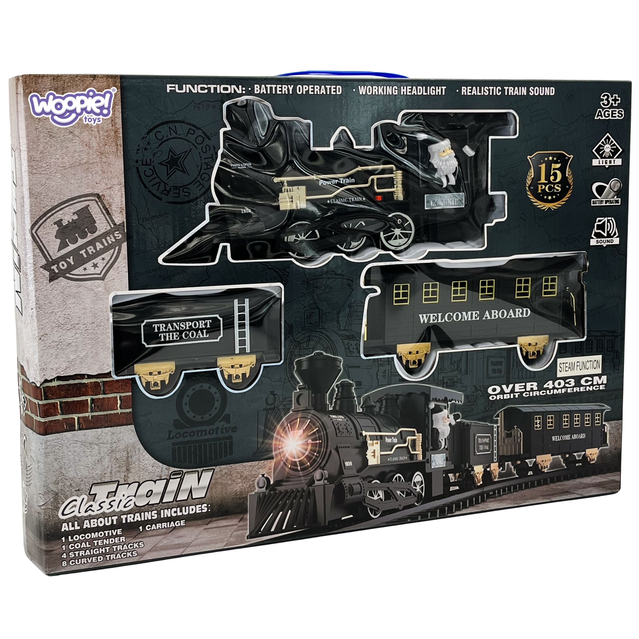 Vydajte sa na úžasnú železničnú cestu s naším parným vláčikom značky Woopie! Táto jedinečná sada je skutočnou lahôdkou pre každého malého milovníka vláčikov a ponúka nezabudnuteľný zážitok z jazdy. Lokomotíva nielenže svieti a vydáva realistické zvuky, ale tiež generuje skutočnú, bezpečnú paru, vďaka čomu je zábava neuveriteľne autentická a fascinujúca. Ľahko zostaviteľné koľaje vám umožňujú vytvoriť pôsobivú trasu s dĺžkou viac ako 403 cm. Pripravte sa na hodiny pútavej a kreatívnej zábavy s týmto jedinečným vláčikom!