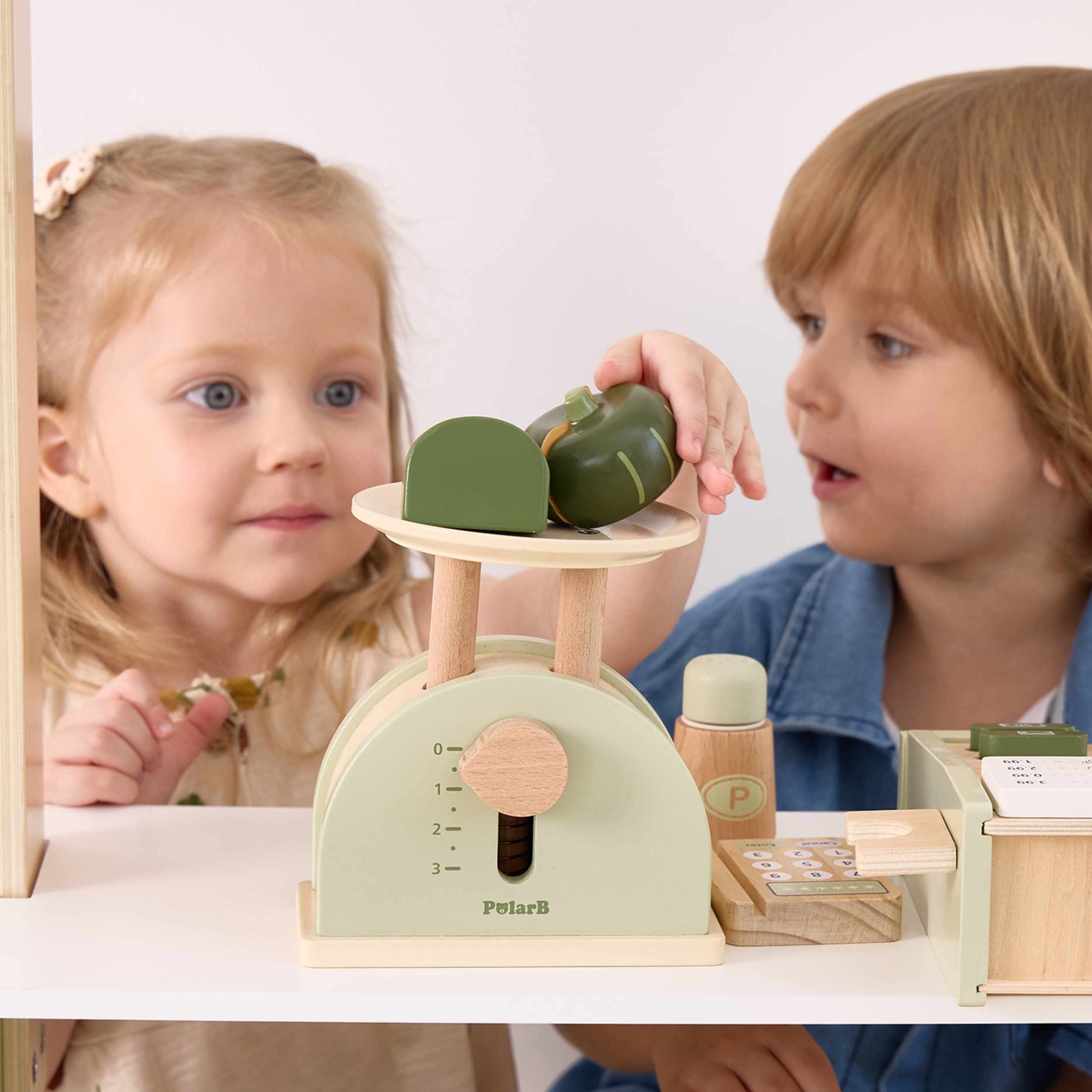 Drevená kuchynská váha od spoločnosti VIGA zo série PolarB je skvelá edukačná hračka pre najmenších, ktorá uvádza deti do sveta pojmov súvisiacich s hmotnosťou a číslami. Pomocou pohyblivej ručičky môže dieťa sledovať, ako balansuje rôzne predmety, čo rozvíja jeho chápanie základných fyzikálnych princípov. Drevená váha je dokonalým spoločníkom v stánku na trhu alebo v kuchyni, ktorý spája učenie s potešením a ponúka vášmu dieťaťu veľa hodín vzdelávacej zábavy.