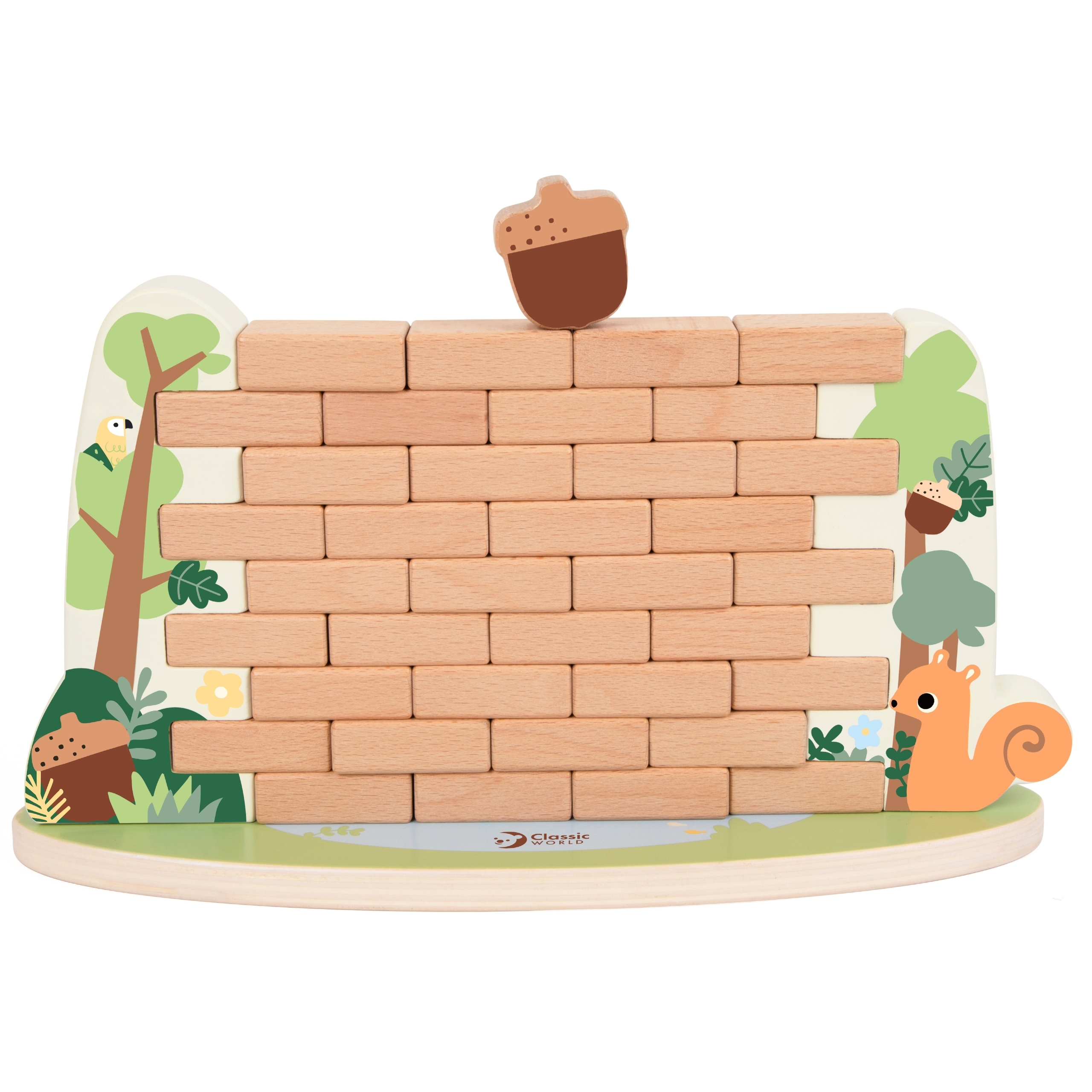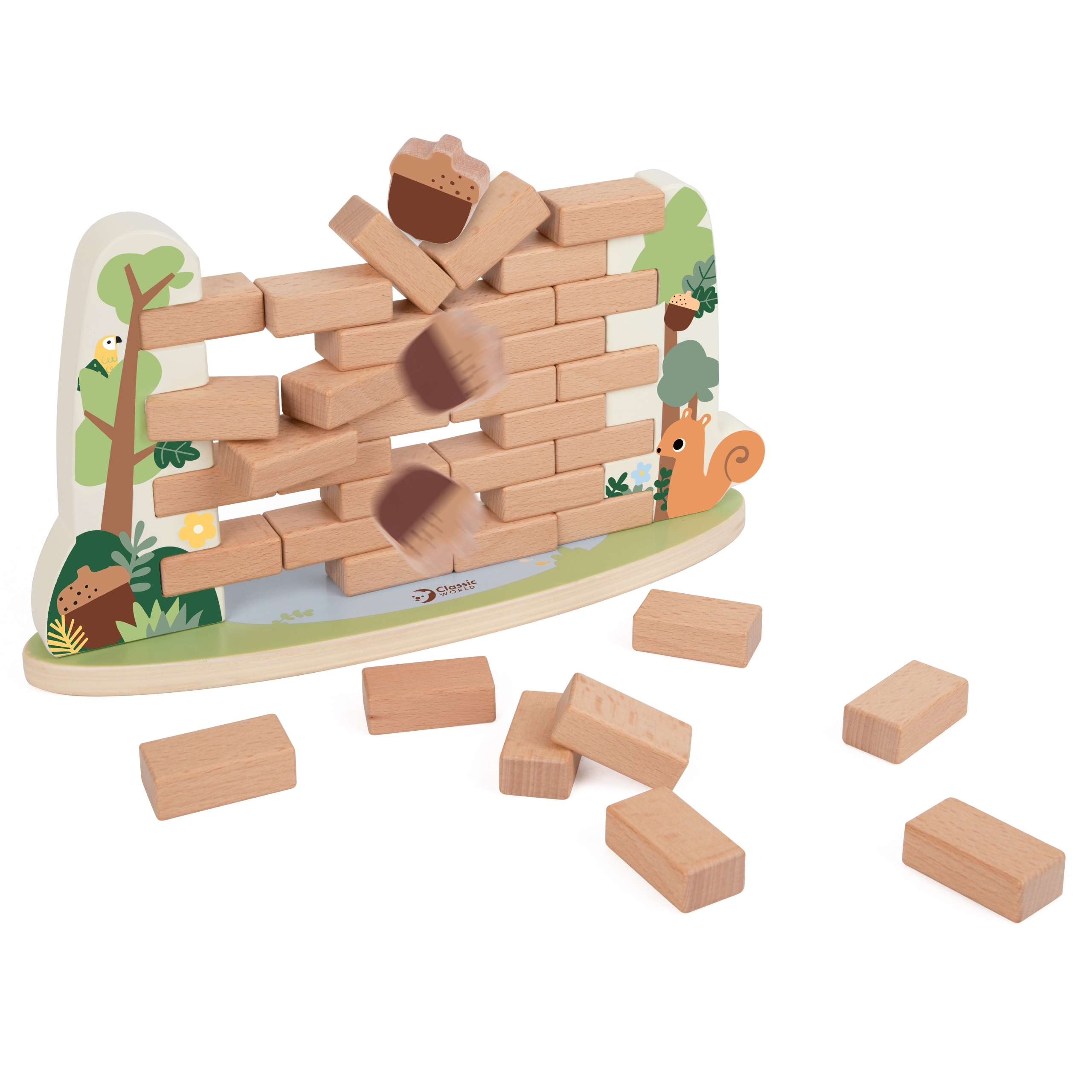 Zručnostná hra Padajúci oriešok od Classic World je pútavá hra pre deti, ktorá rozvíja obratnosť, trpezlivosť a logické myslenie. Úlohou hráčov je vytiahnuť drevené kocky zo steny tak, aby orech na vrchu nespadol. Porazený je ten, kto spôsobí pád orecha alebo zrútenie konštrukcie.