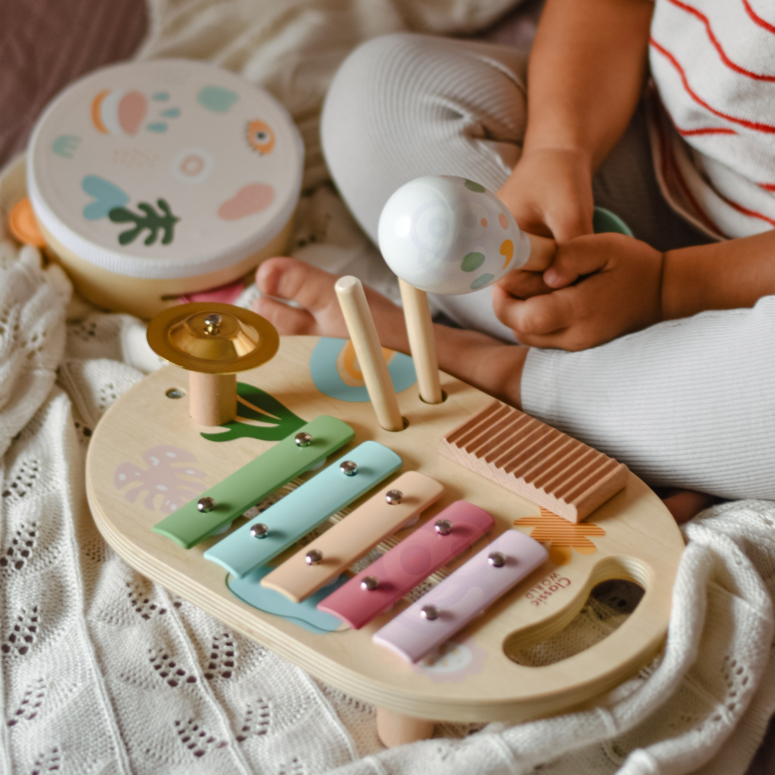 Vyrazte do sveta hudby so sadou hudobných nástrojov značky Classic World. Vďaka tejto hračke môže vaše dieťa už od útleho veku objavovať svet hudby a zvukov jednoduchým a zábavným spôsobom. Nástroje dokonale zapadnú do malých rúk. Všetky nástroje sú namaľované v krásnych farebných odtieňoch so zvieracími a prírodnými motívmi. Takáto hračka rozvíja hudobné schopnosti, kreativitu a predstavivosť.