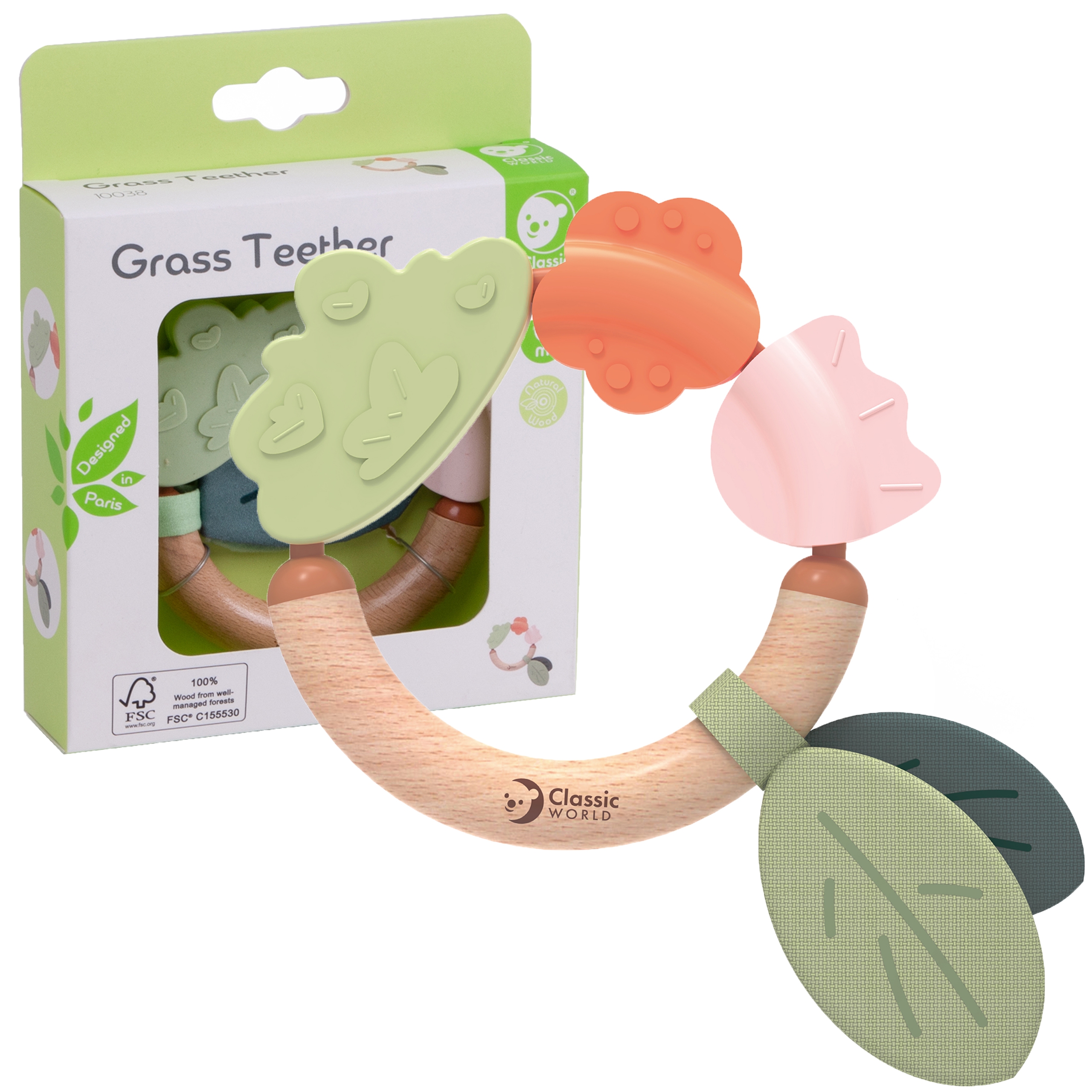 CLASSIC WORLD Drevená hrkálka a hryzadlo 2v1 | Senzorická hračka pre bábätká