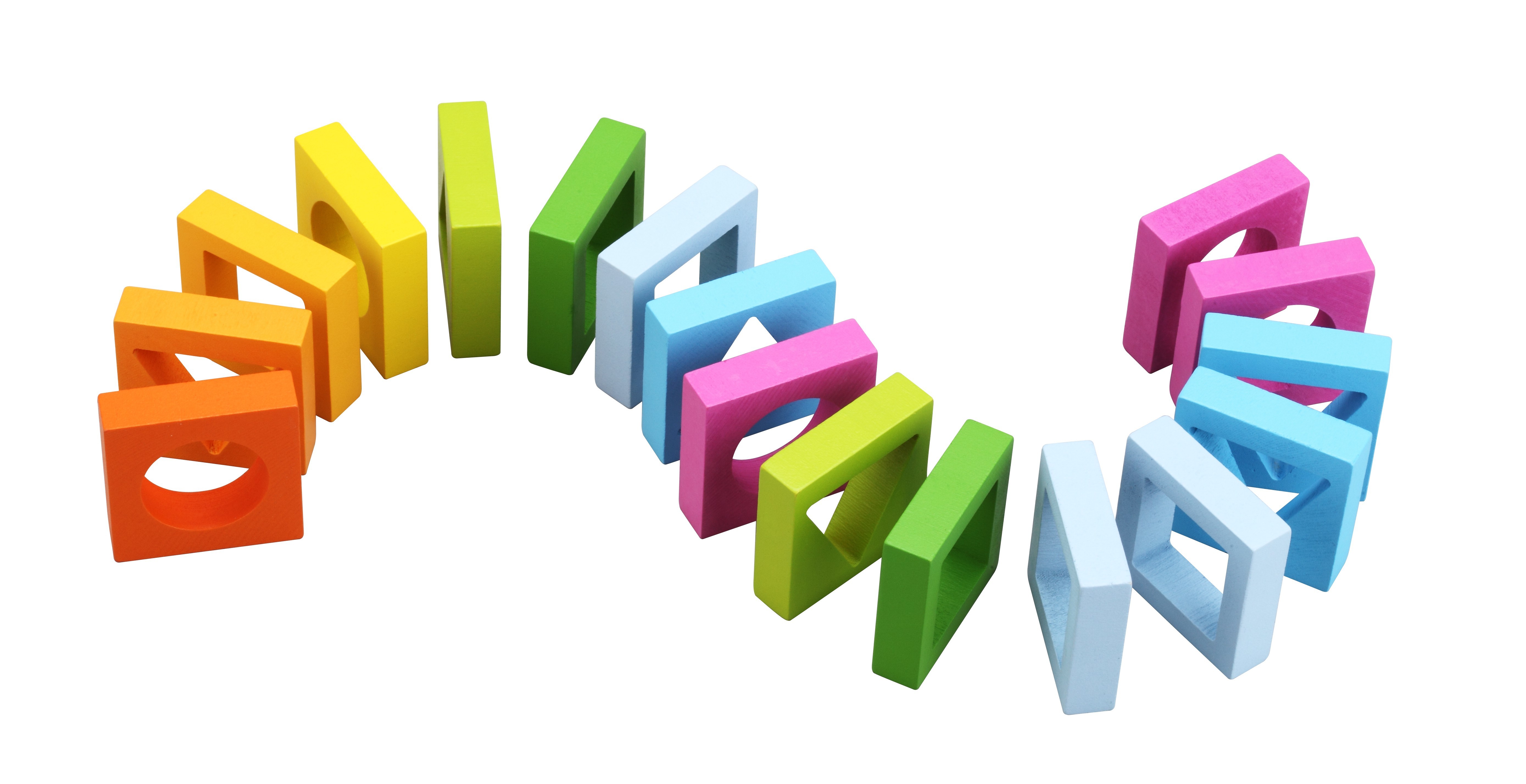 - Štvorcová tabuľa a farebné bloky v rôznych tvaroch.