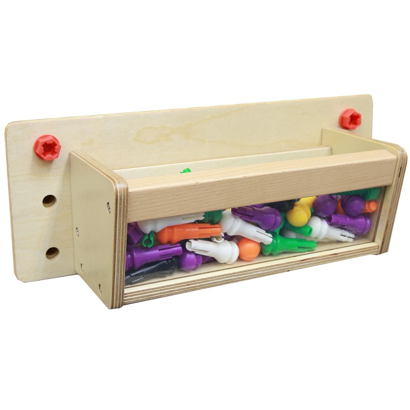 - Kreatívne a vzdelávacie tabule Masterkidz STEM môžu byť doplnené rôznymi prvkami, takže aby nevznikol neporiadok, oplatí sa zaobstarať príslušenstvo, ktoré pomáha udržiavať poriadok. Jednou z nich je drevená nádoba s priehľadnou stenou.
