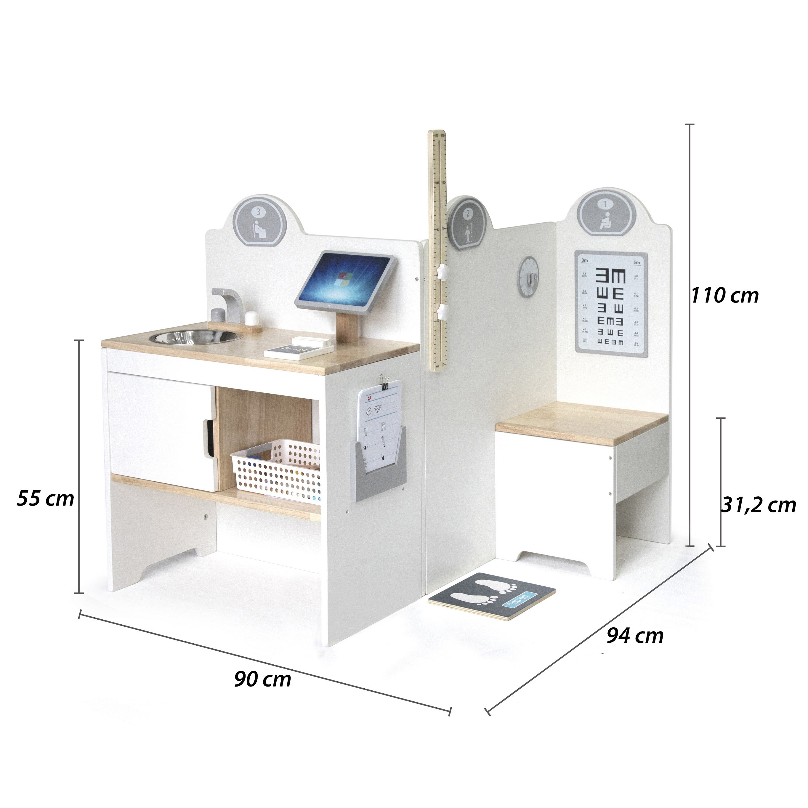 Multifunkčná lekárska ordinácia od známej spoločnosti Viga Toys je skvelá hračka, ktorá umožní vášmu dieťaťu lepšie spoznať povolanie doktora alebo zdravotnej sestry. Súprava obsahuje ordináciu lekára, čakáreň, umývadlo a recepciu. Zahrnuté bolo navyše profesionálne lekárske vybavenie ako: stetoskop, tlakomer, reflexné kladivko, teplomer, vybavenie na röntgenové vyšetrenia, injekčné striekačky, tablety, balenia s tabletkami. Určené pre deti staršie ako 3 roky .