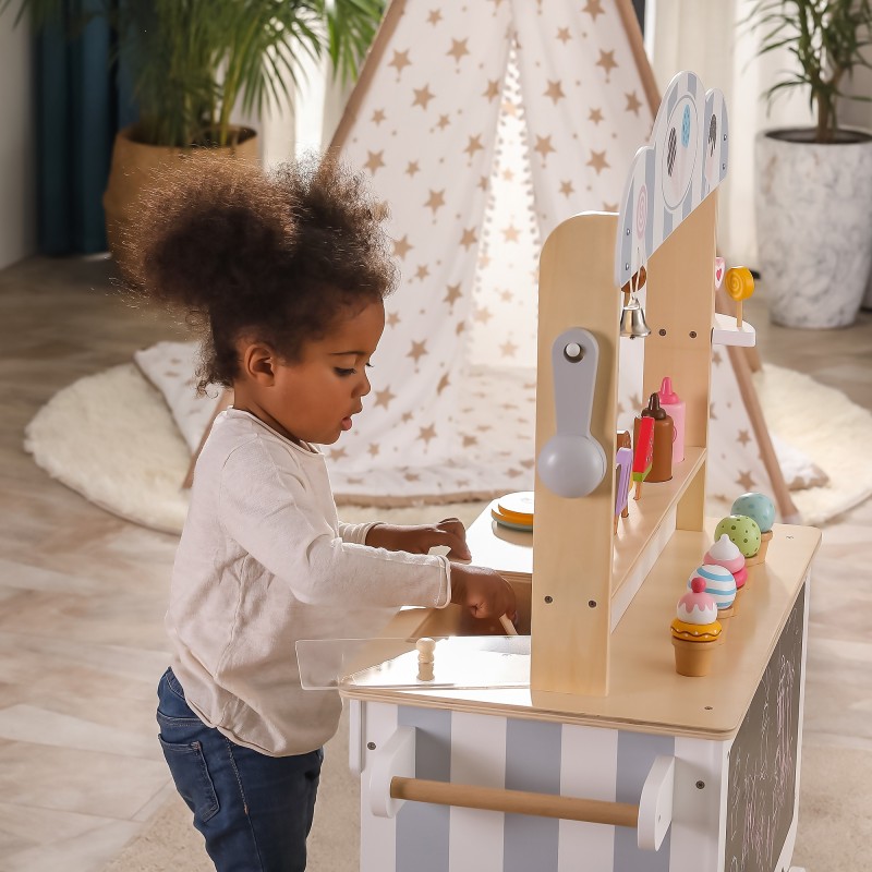 Obchod, cukráreň a zmrzlináreň 3v1 je perfektný darček pre malých cukrárov. Súprava je ako stvorená pre dieťa, ktoré sa chce hrať na predavača alebo cukrára. Vďaka tejto hračke sa bude dieťa cítiť ako profesionálny predavač sladkostí. Balenie obsahuje veľa menších doplnkov, ako sú lízanky, zmrzlina, oblátky a polevy.