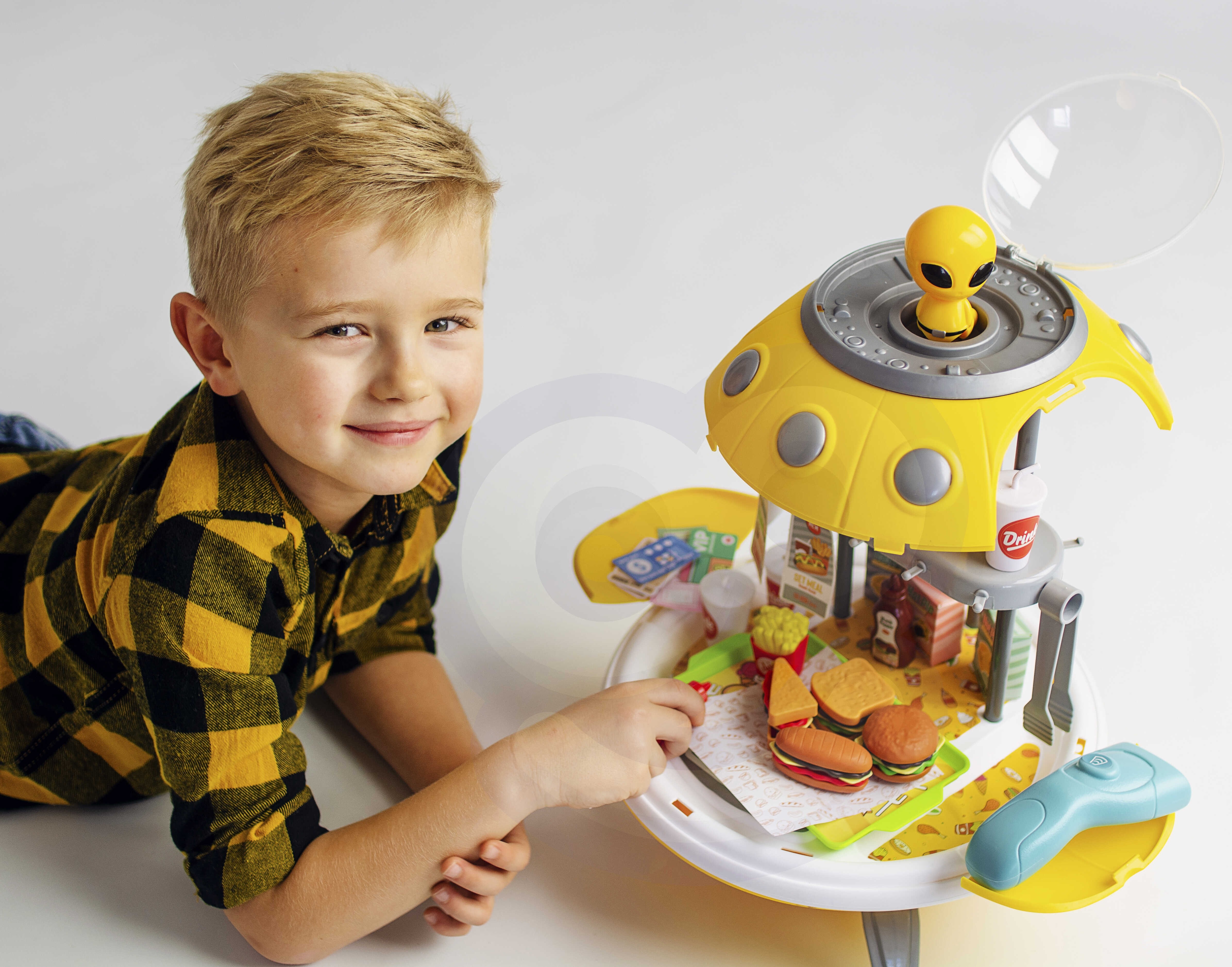 Detský Fast Food obchod v štýle UFO od spoločnosti WOOPIE je kozmický set určený pre každé dieťa! Hračka plní 3 funkcie (projektor, obchod a štýlový batoh). Počas nosenia batohu sa hlava Marťana voľne pohybuje za sklom lode. Najdôležitejšou funkciou je však možnosť rozložiť si svoju vesmírnu loď na super rýchle občerstvenie. Deti sa spolu môžu hrať na vesmírnych predavačov. Hranie rolí a napodobňovanie povolaní rozvíja vedomie vášho dieťaťa a stimuluje jeho predstavivosť a kreativitu.