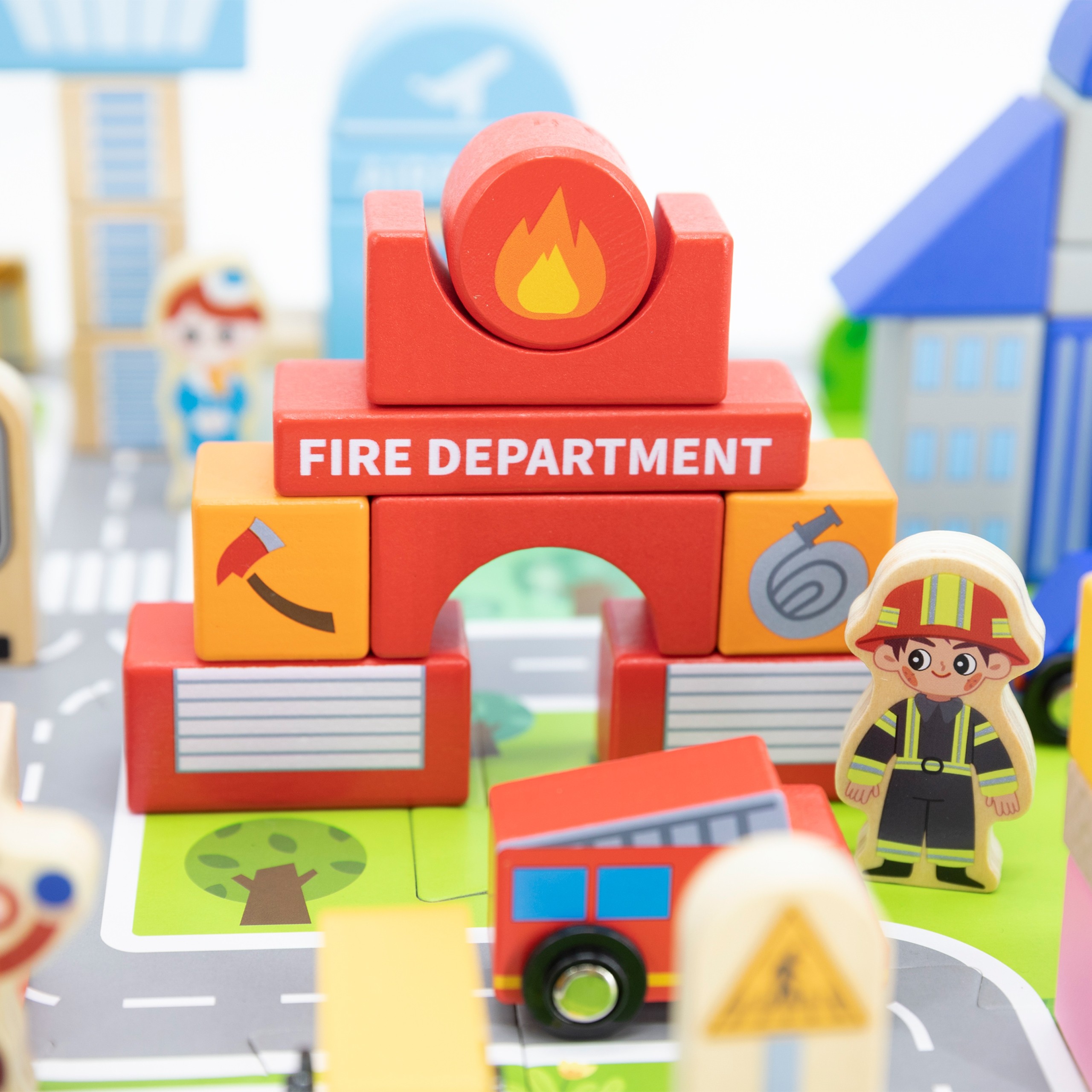 VIGA Drevené Bloky na Skladanie s Figúrkami - Mesto