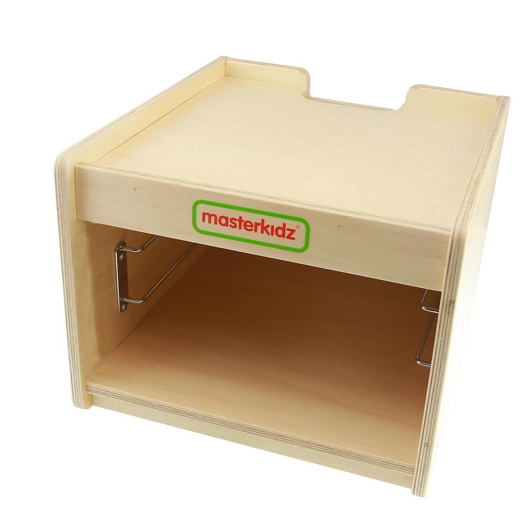 Drevená skrinka Masterkidz je praktickým riešením na uloženie vzdelávacích tabúľ. Zmestia sa do nej až 3 tabule s rozmermi 28 x 28 cm, čo je ideálne pre menšie zbierky. Na vrchnú časť skrinky je možné umiestniť prídavnú tabuľu. Ak potrebujete ešte zväčšiť úložnú kapacitu, môžete na seba umiestniť rovnaké skrinky. Pevná konštrukcia zaručuje odolnosť a bezpečnosť.