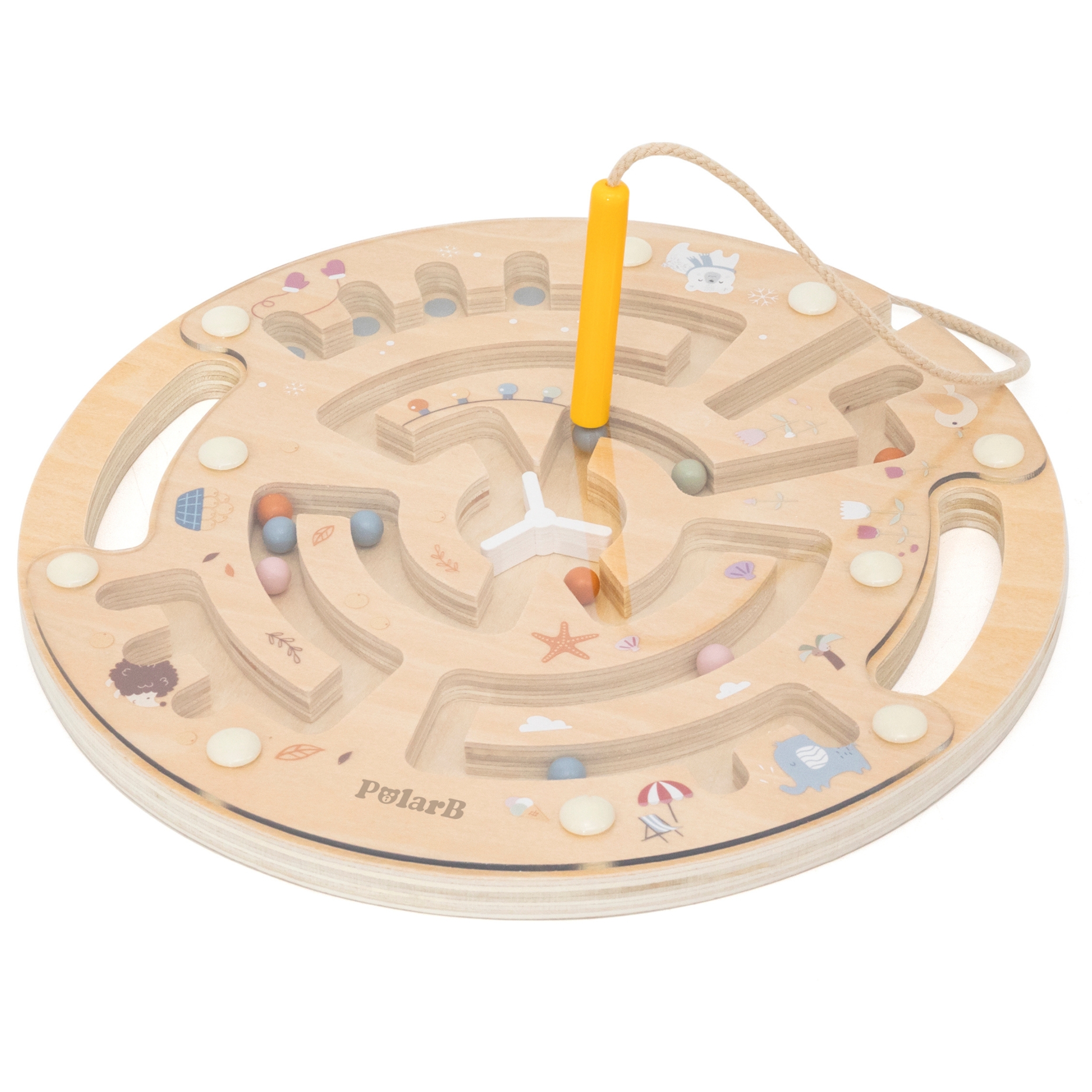 Magnetické bludisko od spoločnosti VIGA je vyrobené z masívneho dreva a zdobené pôvabnými ilustráciami zobrazujúcimi štyri ročné obdobia. Nielenže poskytuje skvelú zábavu, ale podporuje aj rozvoj manuálnych zručností a logického myslenia. Vďaka magnetickej paličke môžu deti presúvať farebné loptičky cez bludisko, čím rozvíjajú koordináciu ruka-oko.