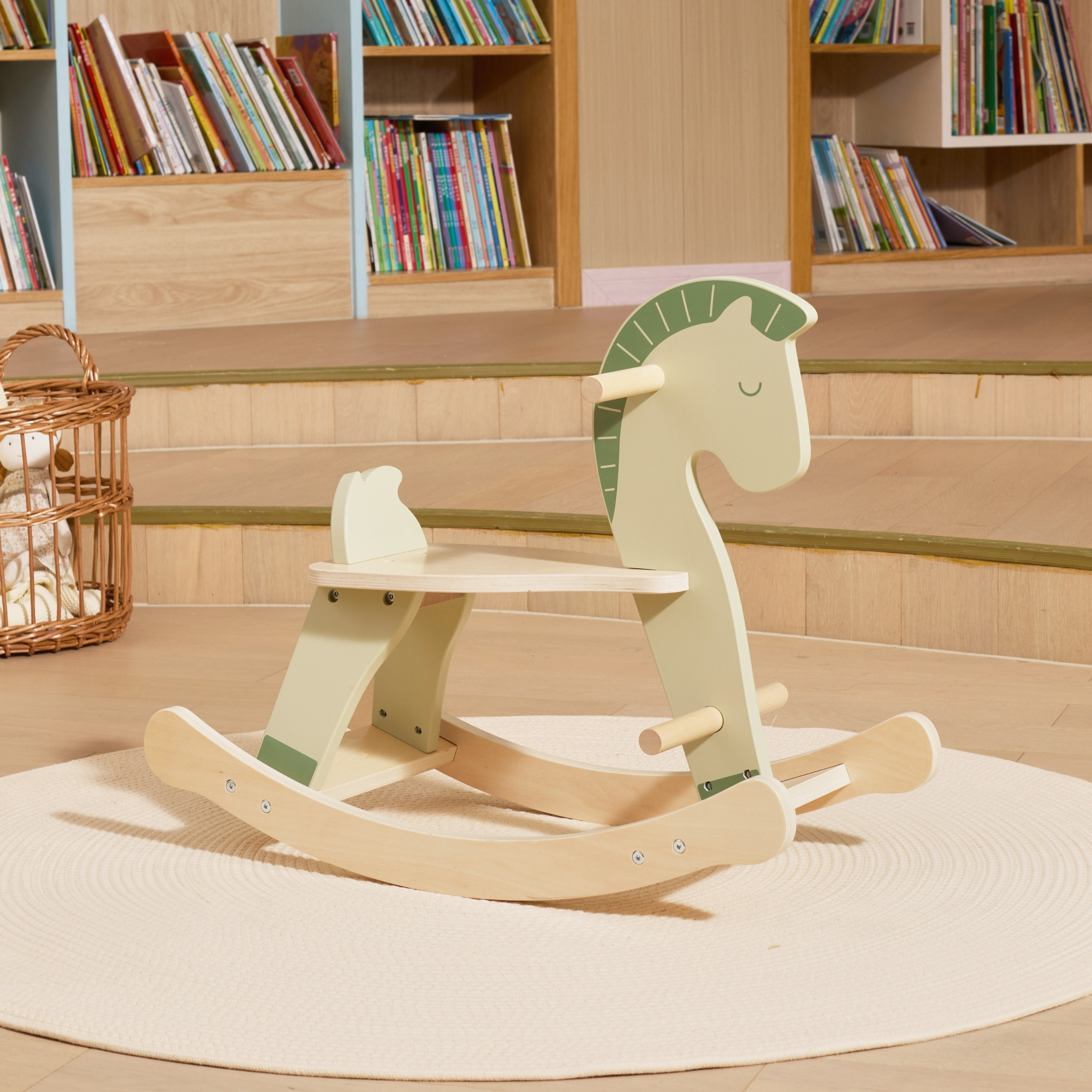 Bezpečnosť a pohodlie sú na prvom mieste. Koník má stabilnú konštrukciu, pohodlné sedadlo s opierkou, ľahko uchopiteľné rukoväte pre malé rúčky a praktické opierky na nohy, ktoré dodávajú dieťaťu istotu a podporujú správne držanie tela počas hojdania. Rozkošný dizajn a príjemná zelená farba navyše inšpirujú ku kreatívnej hre a robia z koníka milého kamaráta.