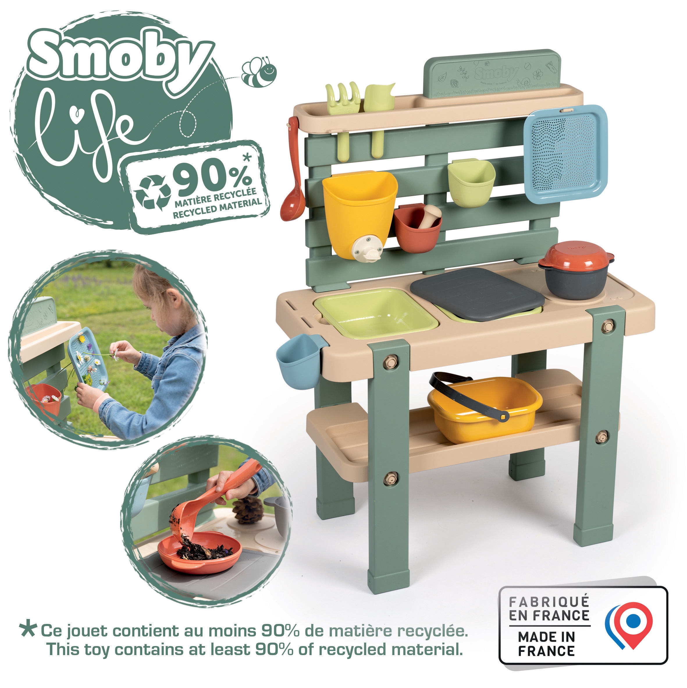Objavte EKO Záhradnú kuchynku na vodu a piesok z revolučnej rady Smoby Life – prvú záhradnú hračku svojho druhu, ktorá spája radosť z varenia s kreatívnou hrou vonku! Tento set, vyrobený až z 90% recyklovaných materiálov, je dokonalým miestom pre malých kuchárov od 3 rokov, kde môžu objavovať prírodu a popustiť uzdu svojej fantázii.