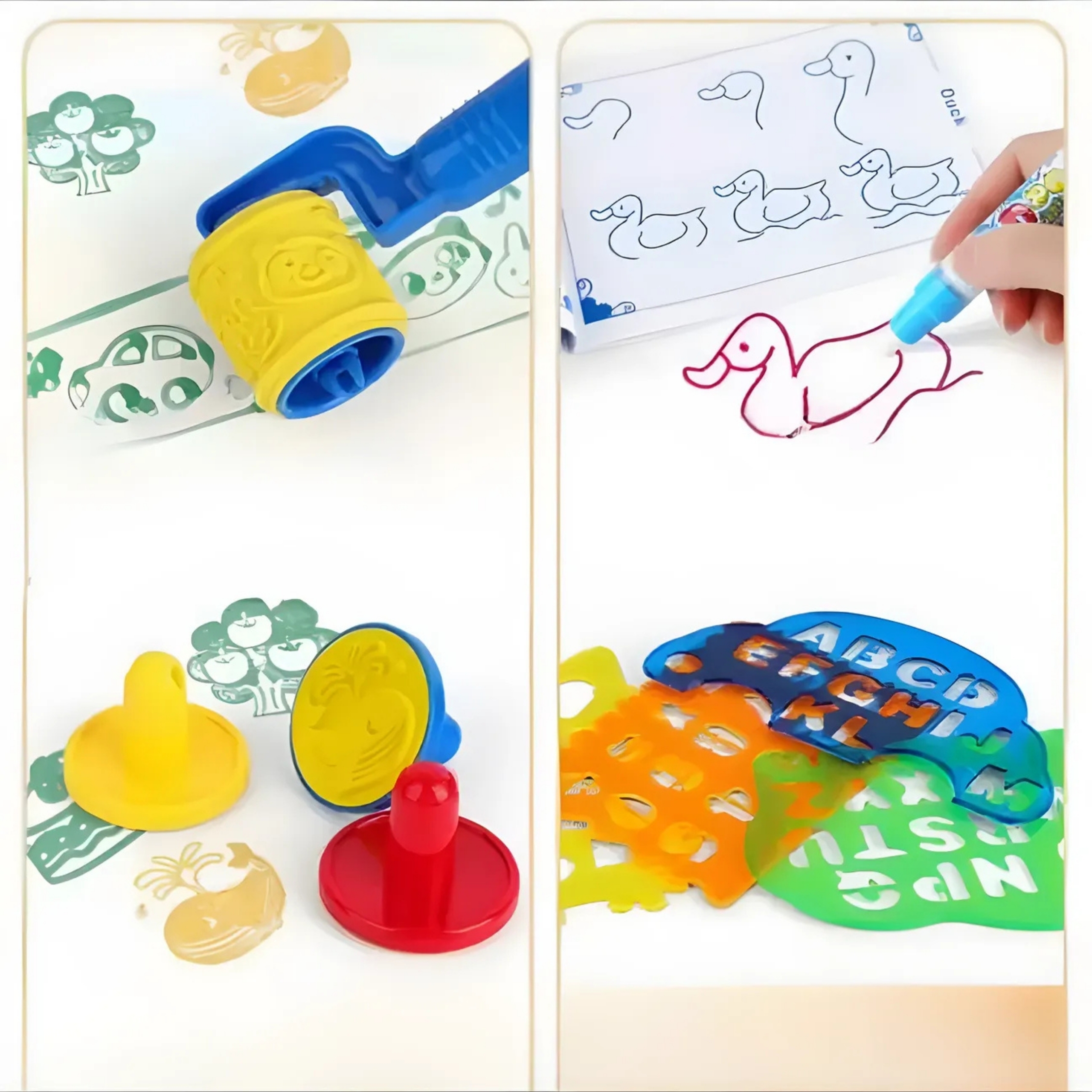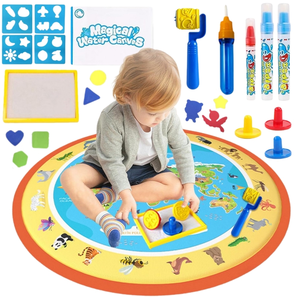 Magická podložka na maľovanie vodou od Woopie je kreatívna a vzdelávacia hračka, ktorá poteší každé dieťa. Vďaka špeciálnym vodným fixkám je maľovanie úplne bezpečné – stačí len voda na vytvorenie úžasných kresieb a vzorov. Farebná mapa sveta s vyznačenými zvieratami premieňa hru na príležitosť na učenie sa a objavovanie prírody. Sada obsahuje množstvo príslušenstva: pečiatky, šablóny, valček, fixky a špongiu – na podporu kreativity. Je to perfektný darček, ktorý rozvíja fantáziu a zaručuje hodiny zábavy bez neporiadku.