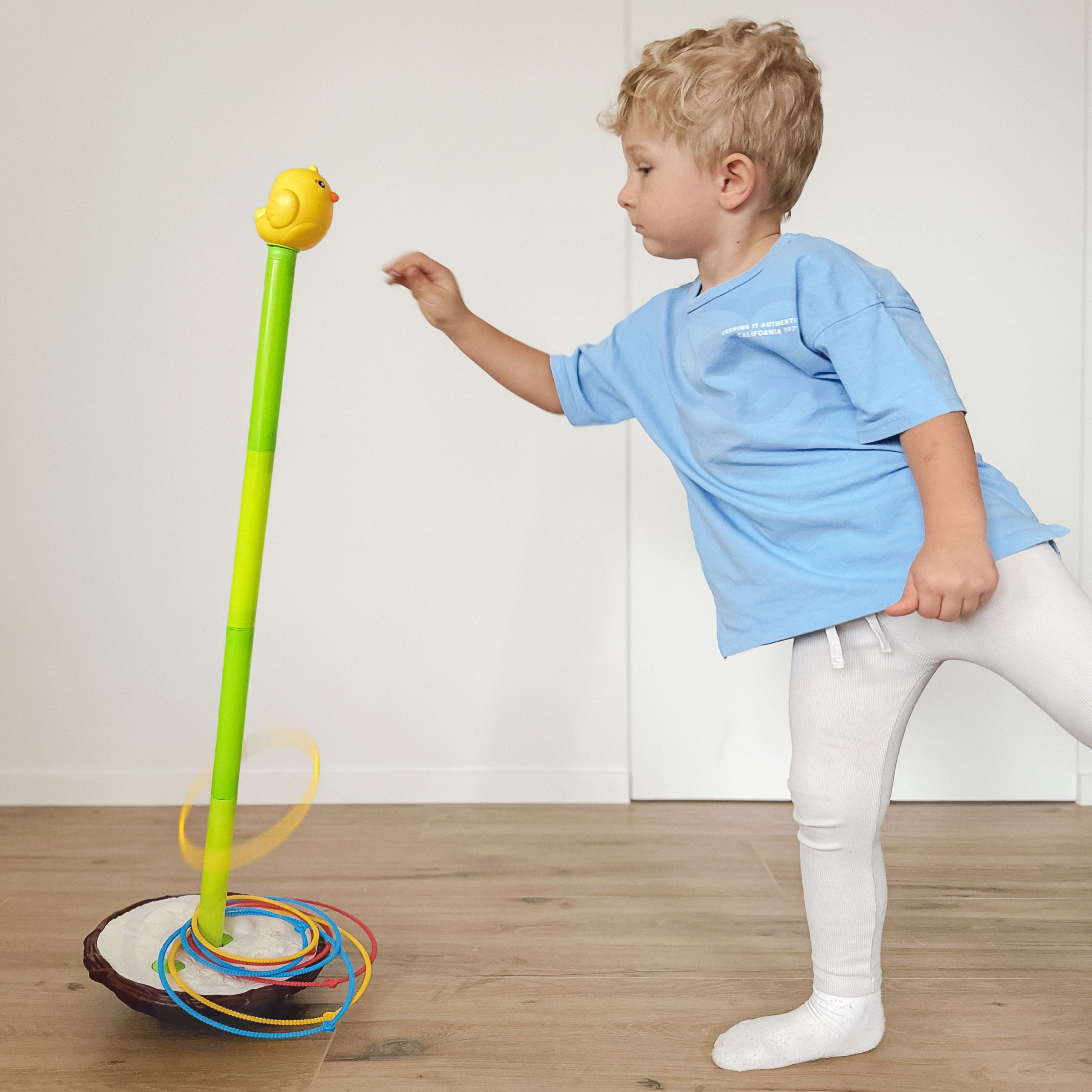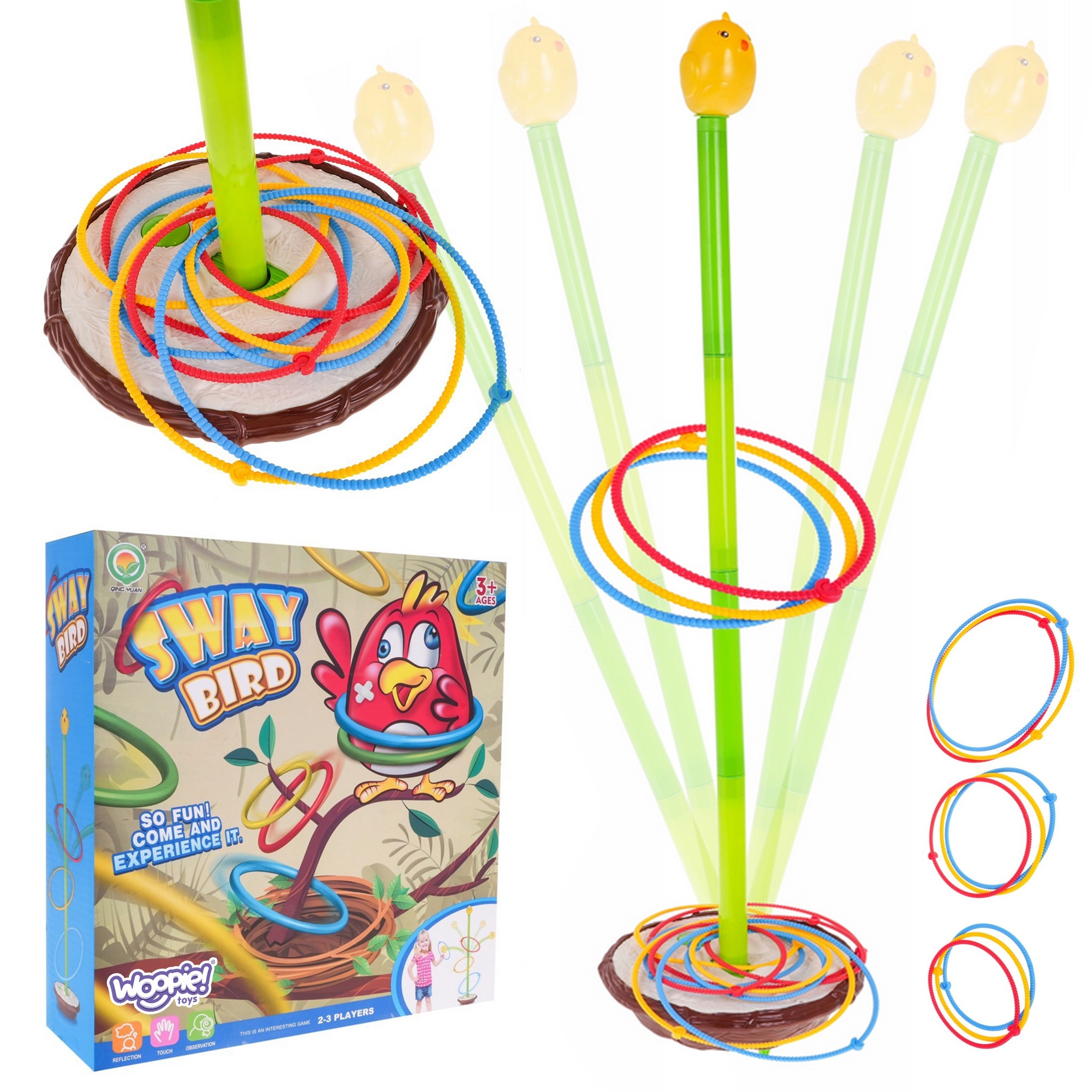 Zručnostná hra od spoločnosti WOOPIE pre deti od 3 rokov. Hru môžu hrať dvaja alebo traja hráči. Na hniezde sa hojdá vtáčik a našou úlohou je nasadiť všetky krúžky na stonku. Hračka má 3 úrovne nastavenia výšky, čím je vyššia tým vyššia je úroveň obtiažnosti.