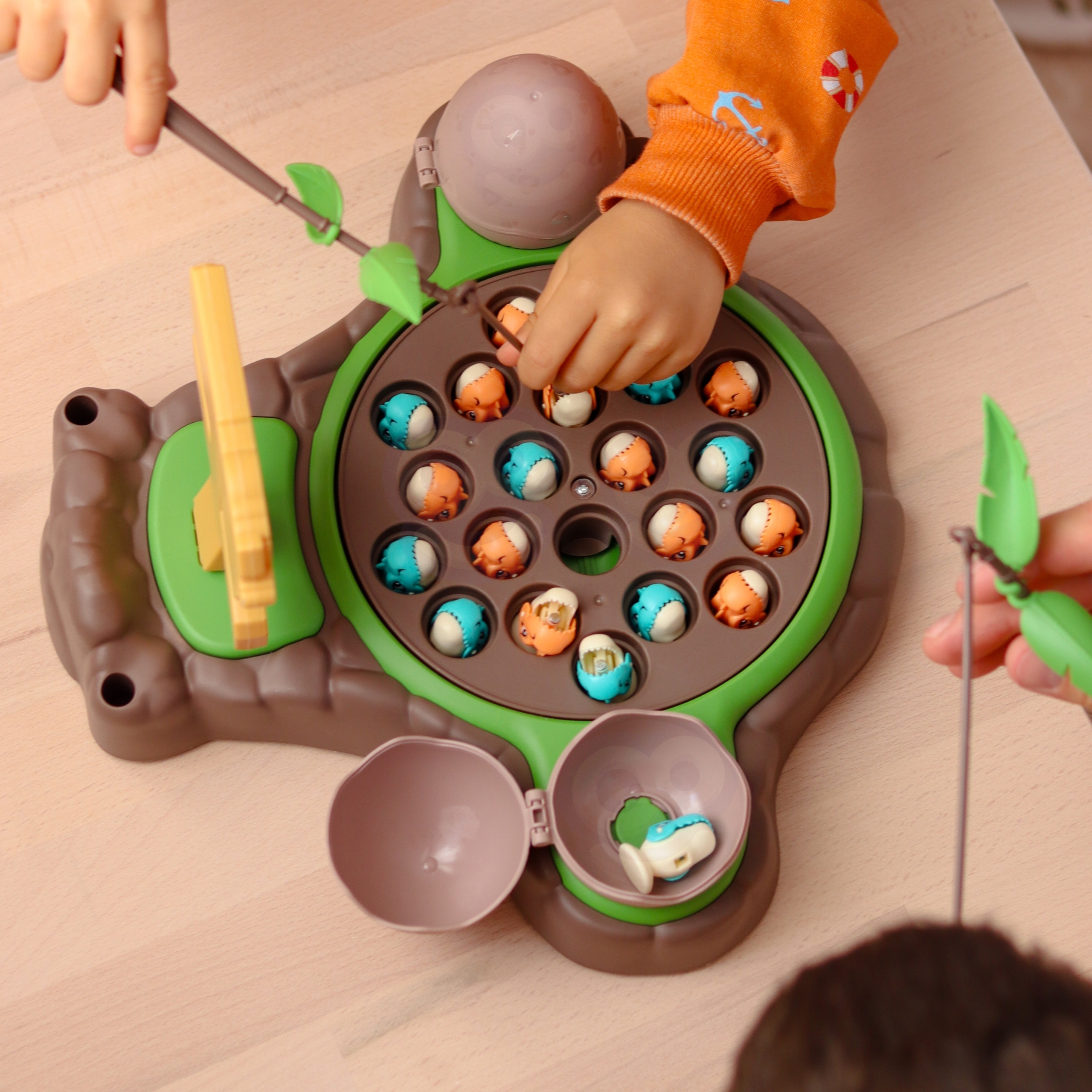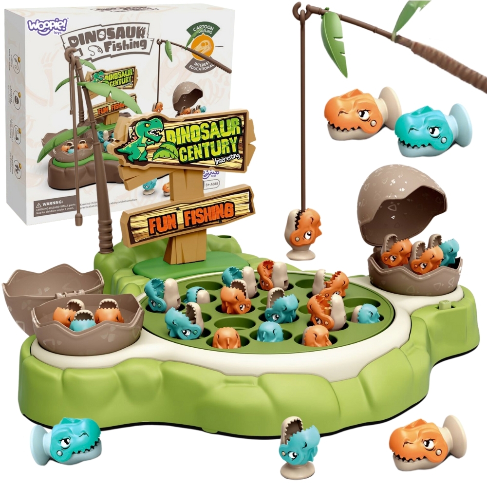 Hra na chytanie rybičiek značky WOOPIE vás povzbudí k objavovaniu sveta. Na podstavci sa nachádza pohyblivý štít, z ktorého môžete chytať malých dinosaurov. Vypínač je umiestnený na pravej prednej strane. Keď tlačidlo umiestnime do stredu, ciferník sa začne otáčať, keď ho posunieme úplne doprava, počujeme príjemnú melódiu, ktorá nás bude sprevádzať pri hraní. Táto hračka dokonale podnecuje fantáziu, podnecuje kreatívne myslenie a taktiež rozvíja manuálne zručnosti u najmenších detí.