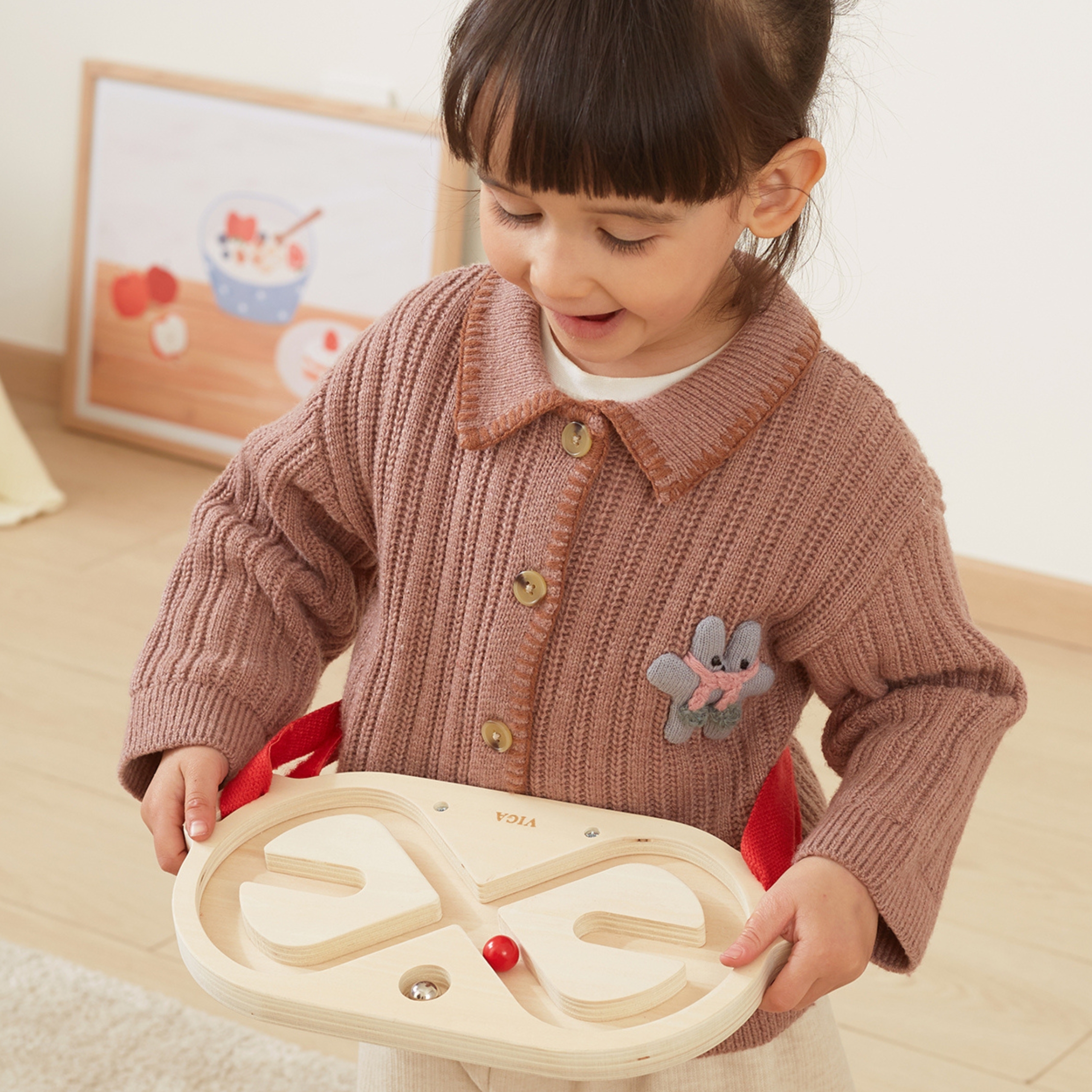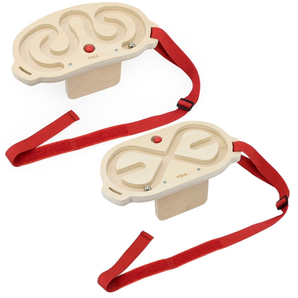 VIGA Drevený labyrint na balansovanie je inovatívna pohybová hra, ktorá zapája celé telo, rozvíja koordináciu a rovnováhu. Vďaka dvom dreveným labyrintom a loptičkám rôznej hmotnosti sa hra stáva pre deti vzrušujúcou výzvou. Hráči majú opasok s bludiskom okolo pása, hrudníka, nôh alebo rúk, potom pohybom tela roztočia loptičku a vedú ju bludiskom. Hračky je možné používať samostatne alebo vo dvojiciach, čo dodáva hre dynamiku a integruje účastníkov.