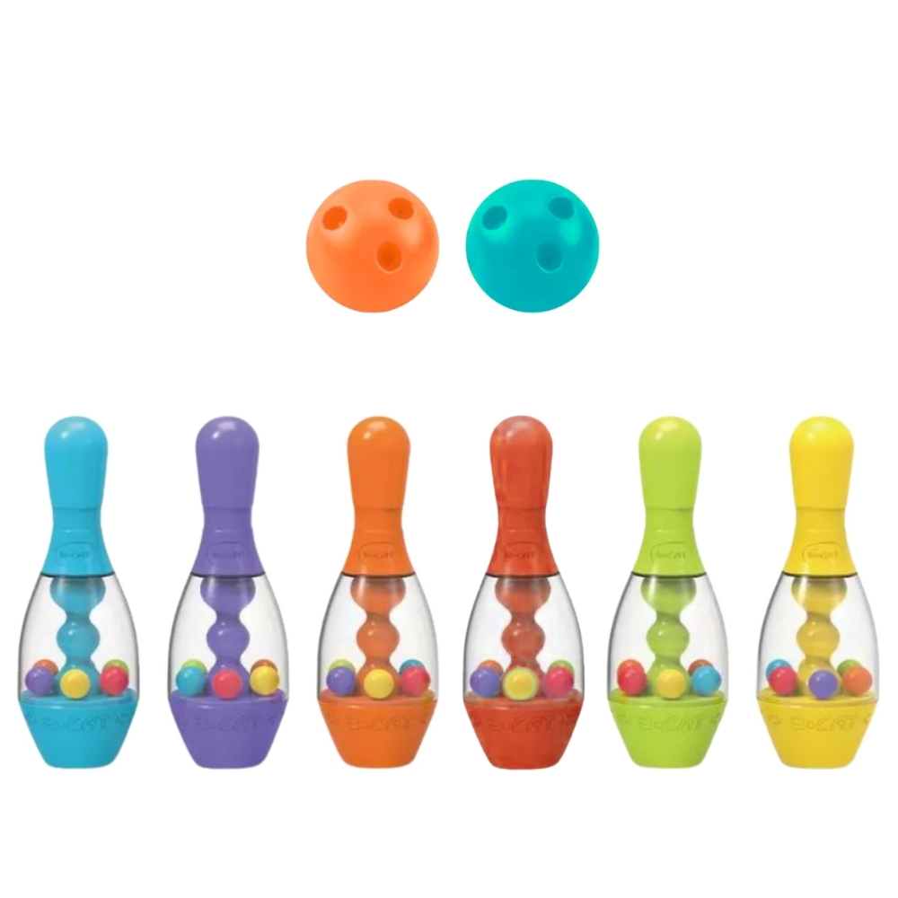 Farebné senzorické bowlingové kolky od Woopie sú všetkým, čo deti potrebujú na rozvoj motorických zručností a zábavu. Sada obsahuje 6 kolkov a 2 loptičky vyrobené z mäkkého materiálu. Nemusíme vás presviedčať, že bowling bude pre vaše dieťatko skvelá zábava, ale poskytne aj mnoho vzdelávacích výhod. Kolky majú povrchy s rôznymi vzormi, ktoré stimulujú ich zmysly. Táto hračka rozvíja motorické zručnosti vášho dieťaťa prostredníctvom aktivít, ako je beh a hádzanie.