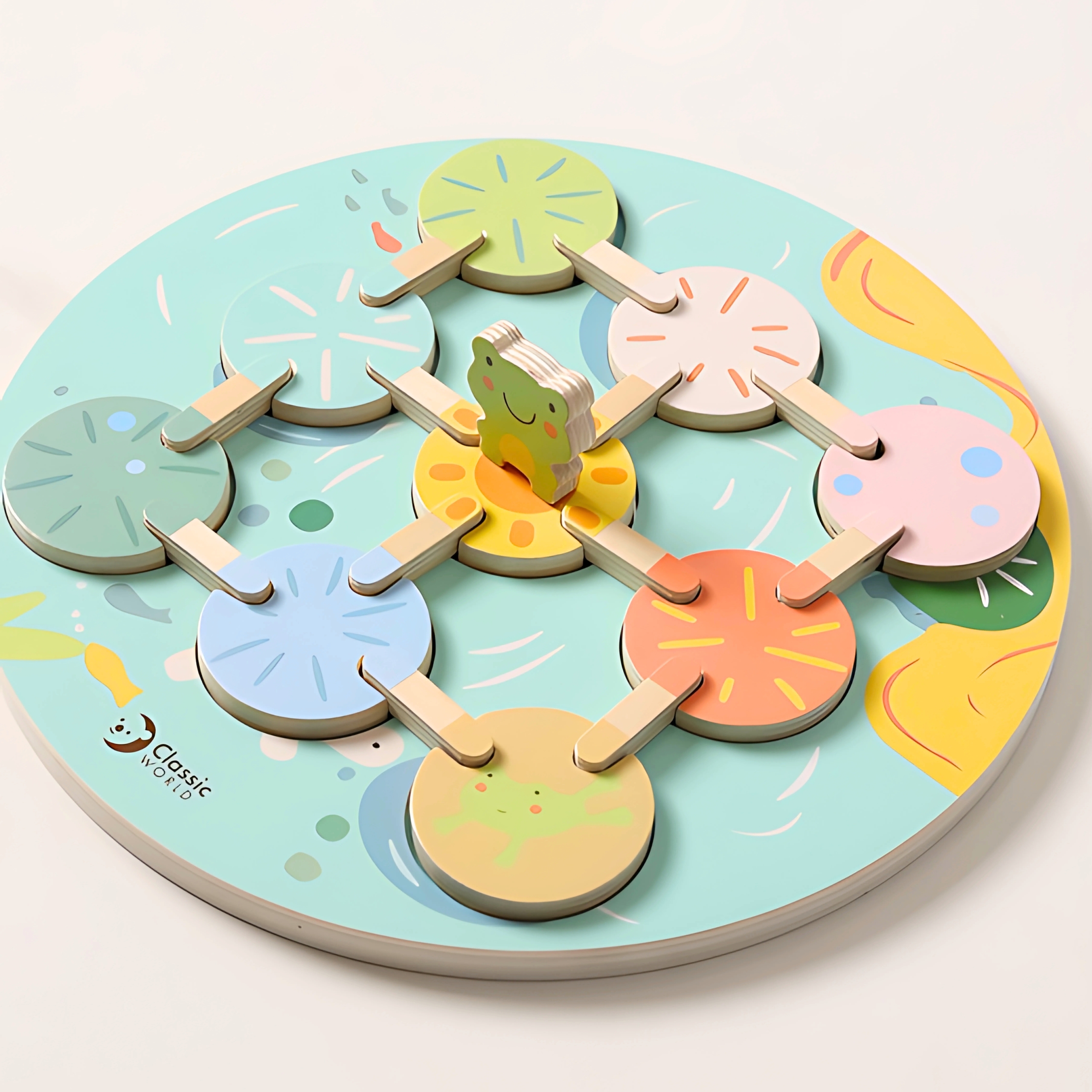 Ponorte sa do sveta jazierok a prírody s pôvabnou vzdelávacou hrou „Lotosové listy“! Toto je jedinečná hračka na spájanie farieb a tvarov, ktorá stimuluje predstavivosť a rozvíja logické myslenie prostredníctvom hry. Drevené prvky, príjemné farby a roztomilá žabka deťom poskytnú dlhé hodiny radostnej a kreatívnej hry.