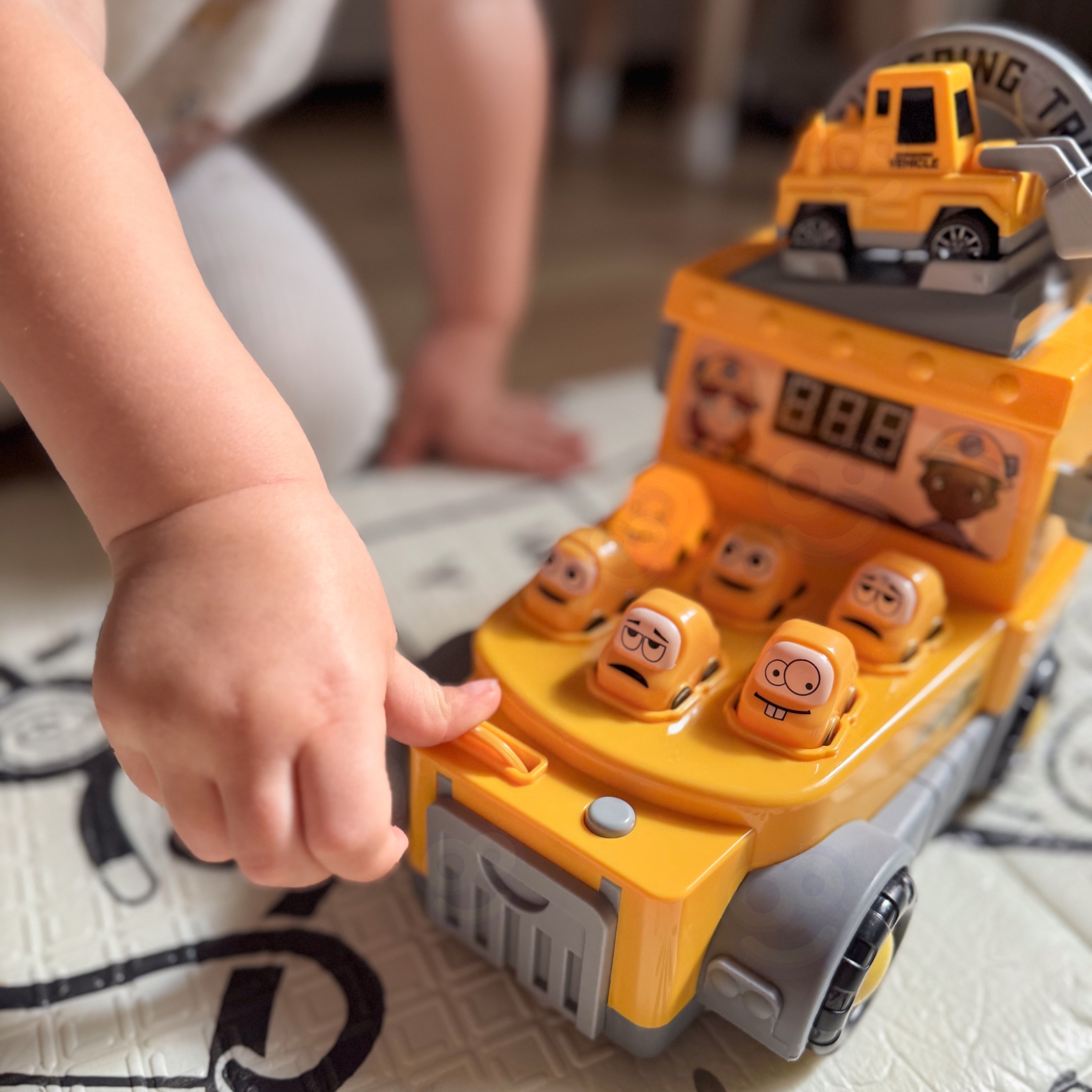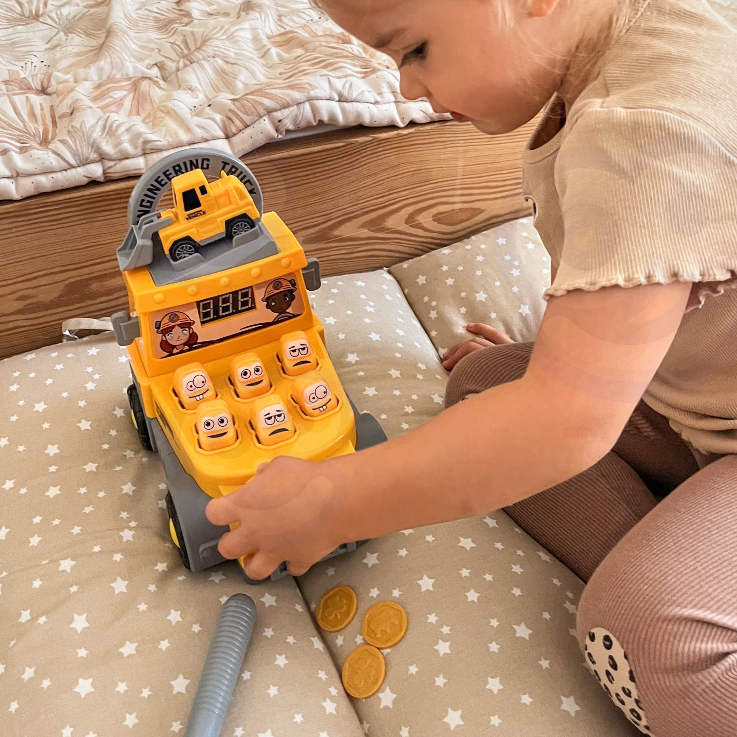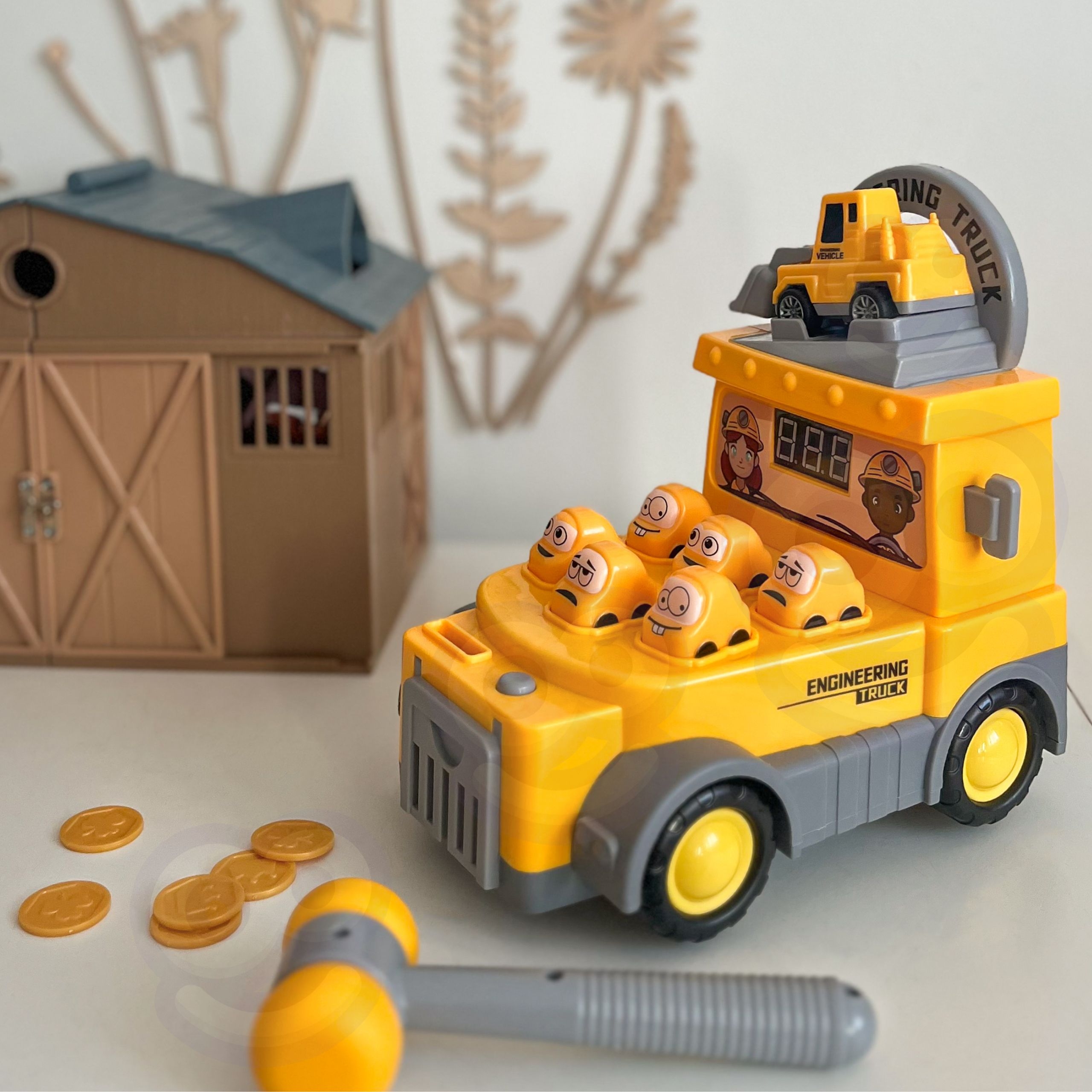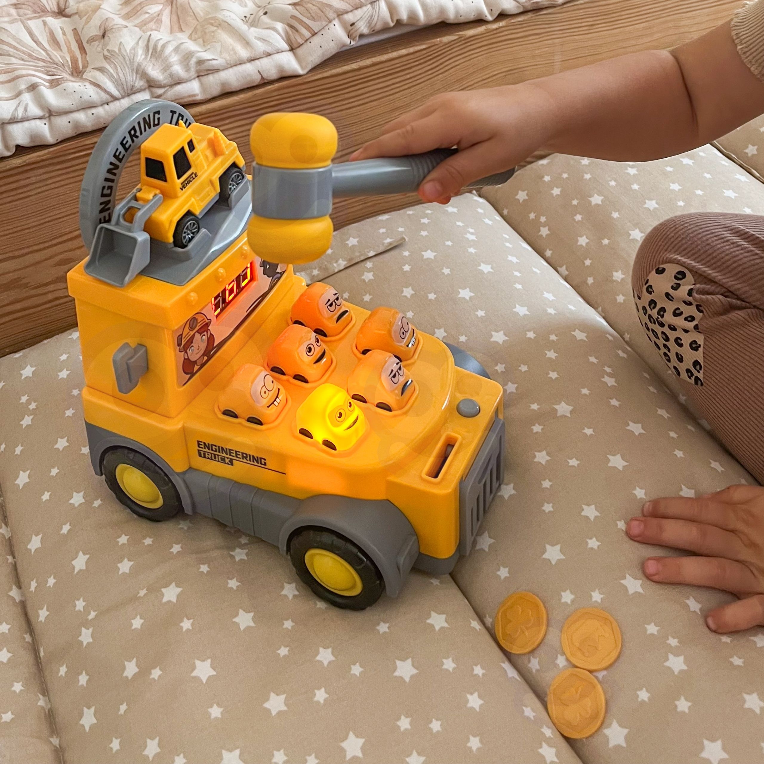 Stavebné auto Woopie 2 v 1 je jedinečná hračka, ktorá deťom poskytne hodiny kreatívnej, aktívnej a vzrušujúcej zábavy. Kombinuje dynamickú hru „Udri krtka“ s klasickým autíčkom. Stačí vhodiť mincu, chytiť mäkké kladivo a zbierať body udieraním figúrok „krtkov“ v podobe malých žltých autíčok! Jeho farebný dizajn, odolná konštrukcia a multifunkčnosť robia z tejto hračky určite zaujímavú hračku pre každého malého staviteľa.