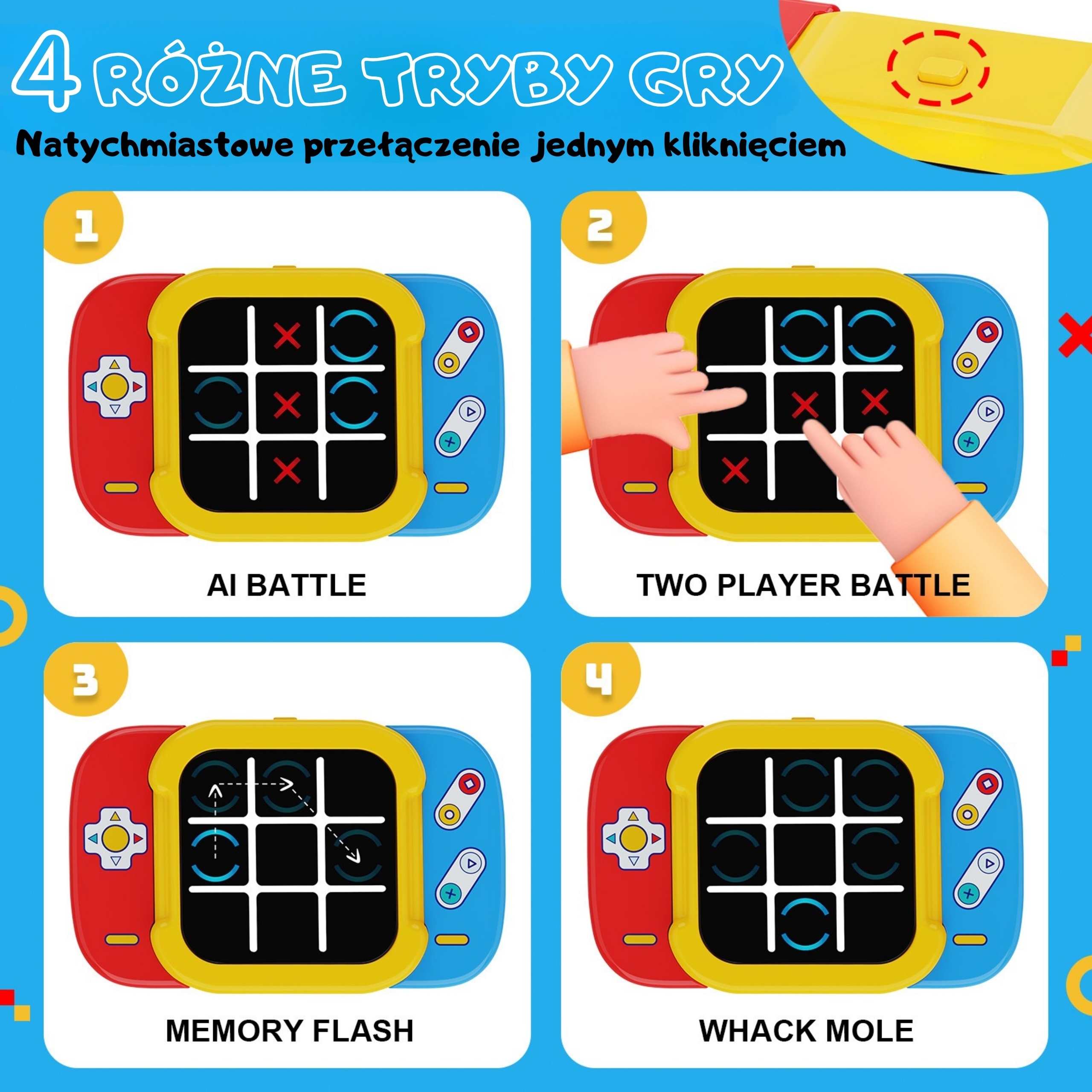 Čo ak by sa klasické Piškvorky stretli s modernou prenosnou hernou konzolou? Hľadáte jednu hračku, ktorá v sebe ukrýva hneď 4 rôzne hry, zabaví celú rodinu a precvičí logiku, pamäť aj reflexy?