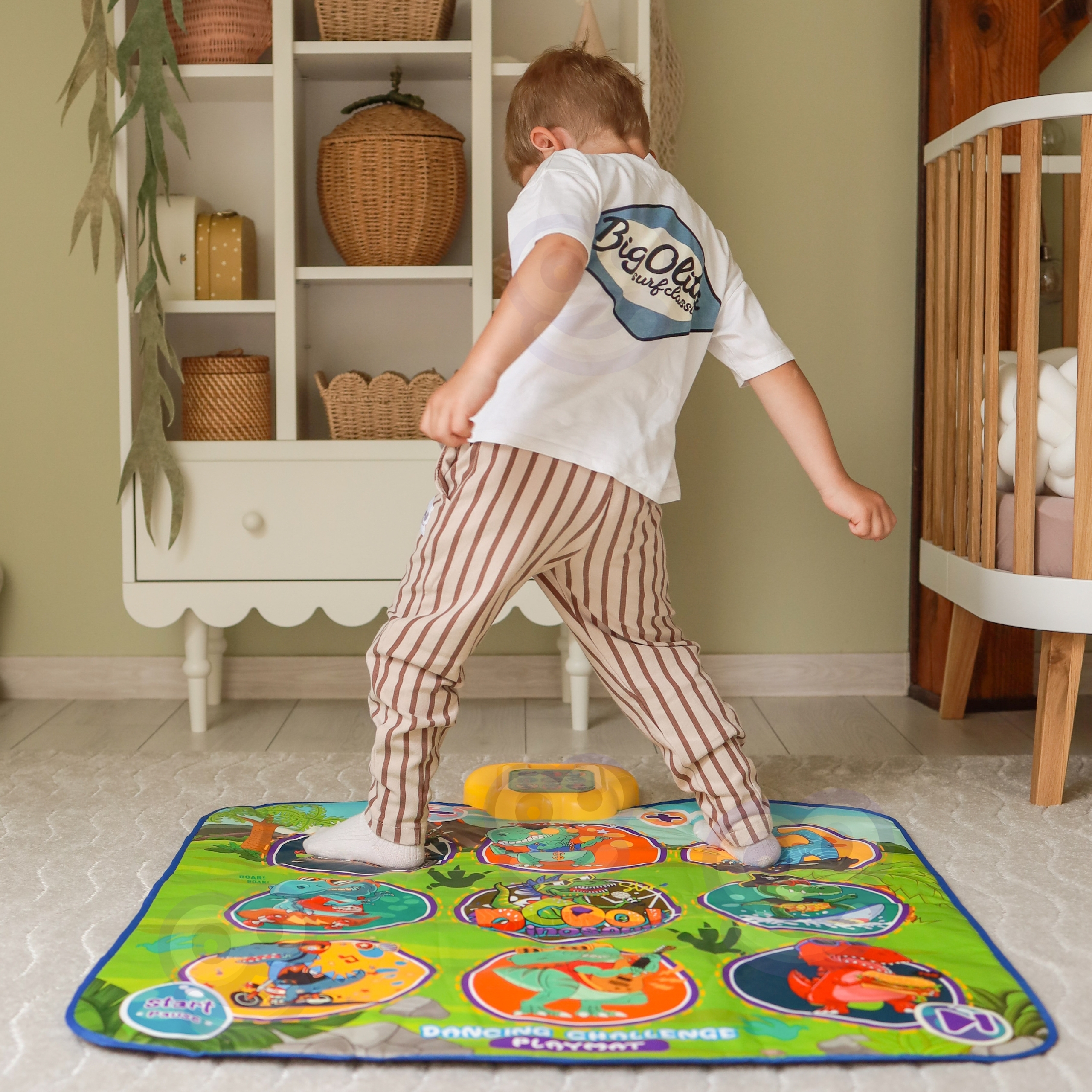 Hudobná podložka s dinosaurami a tanečnou hrou je interaktívna hudobná a pohybová hračka, ktorá povzbudzuje deti k fyzickej aktivite a rozvíja ich motorickú koordináciu a zmysel pre rytmus. Farebný motív dinosaura a intuitívne ovládanie robia z podložky skvelú voľbu pre každého malého milovníka tanca a hudby.