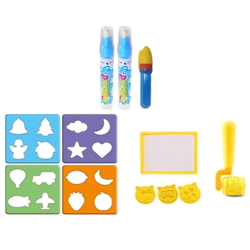 Doprajte svojmu dieťaťu kreatívnu a bezpečnú zábavu s magickou podložkou na maľovanie od spoločnosti WOOPIE. Sada obsahuje šablóny a pečiatky, ktoré spestria hru a umožnia vám vytvoriť ešte zaujímavejšie vzory - stačí namočiť pečiatku do vody a orazítkovať ňou podložku.