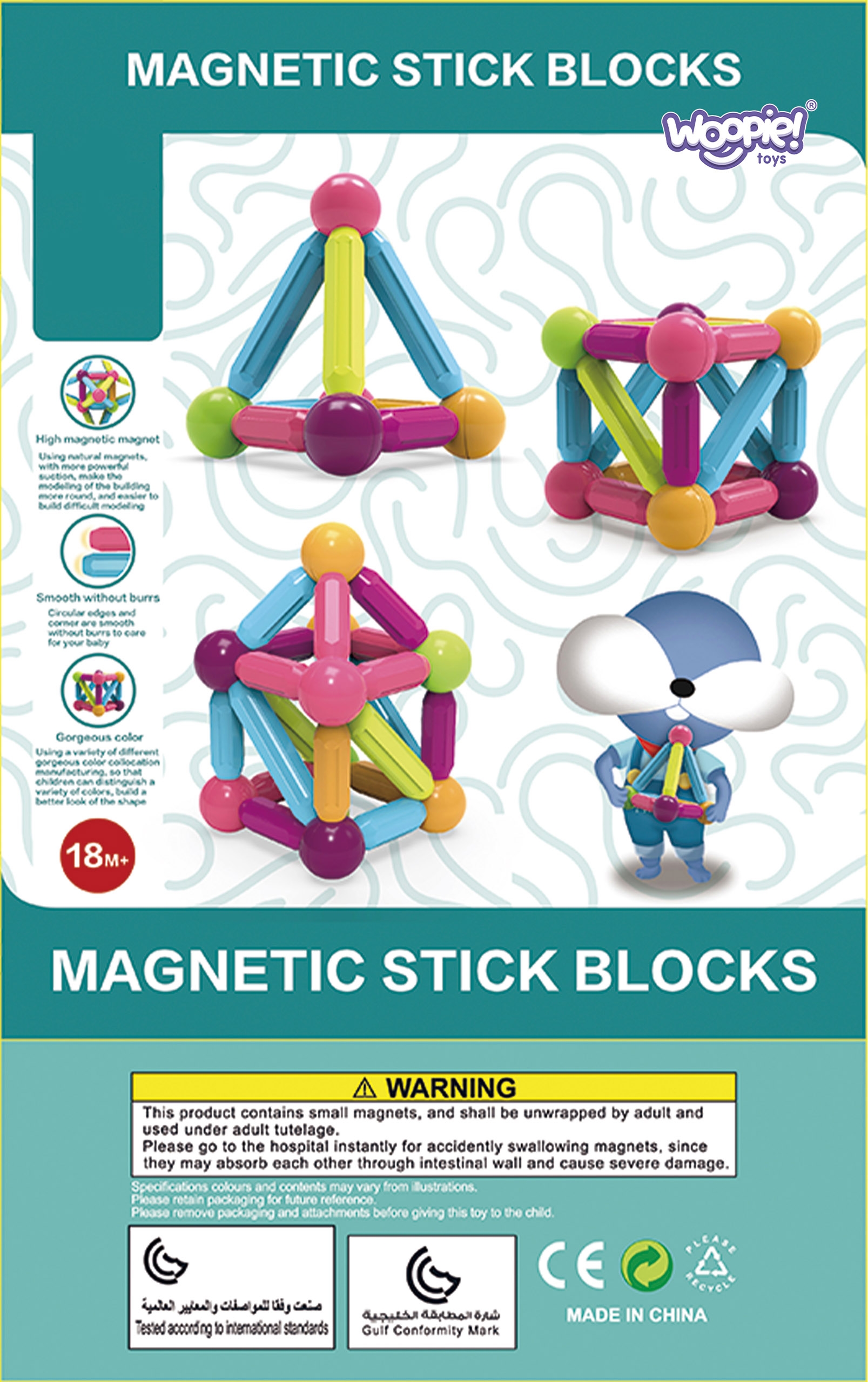 Magnetické skladačky od spoločnosti WOOPIE, spája zábavu a učenie! Stačí, aby malý konštruktér spojil prvky a začal vytvárať budovy a mnoho ďalších systémov, napríklad geometrické obrazce alebo mini domček! Jediným limitom je vaša predstavivosť. Sada obsahuje 28 prvkov. Bloky sú hrubé a farebné. Skladanie stavebníc rozvíja detskú kreativitu, manuálne zručnosti („jemnú motoriku“), priestorovú predstavivosť a koncentráciu.