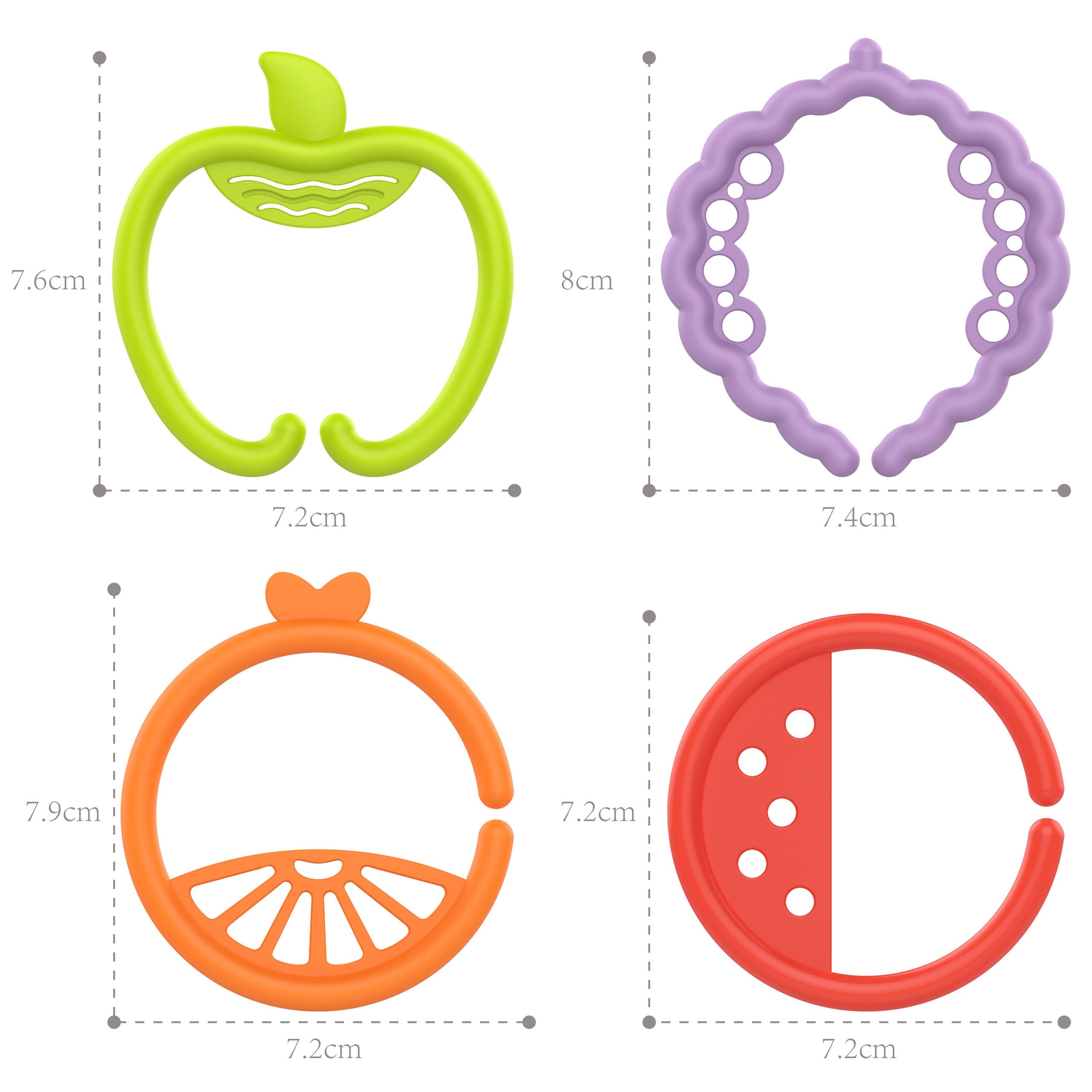 Hryzátka od spoločnosti WOOPIE, farebné prívesky v tvare ovocia, ktoré dieťa ľahko kombinuje a vytvára tak rôzne kombinácie. Prívesky sa dajú využiť mnohými spôsobmi, počnúc vytvorením retiazky, ktorá ich použije ako články, cez pripevnenie vašich obľúbených hračiek až po ich využitie pri iných hrách. Dajú sa pripevniť na kočík či autosedačku.