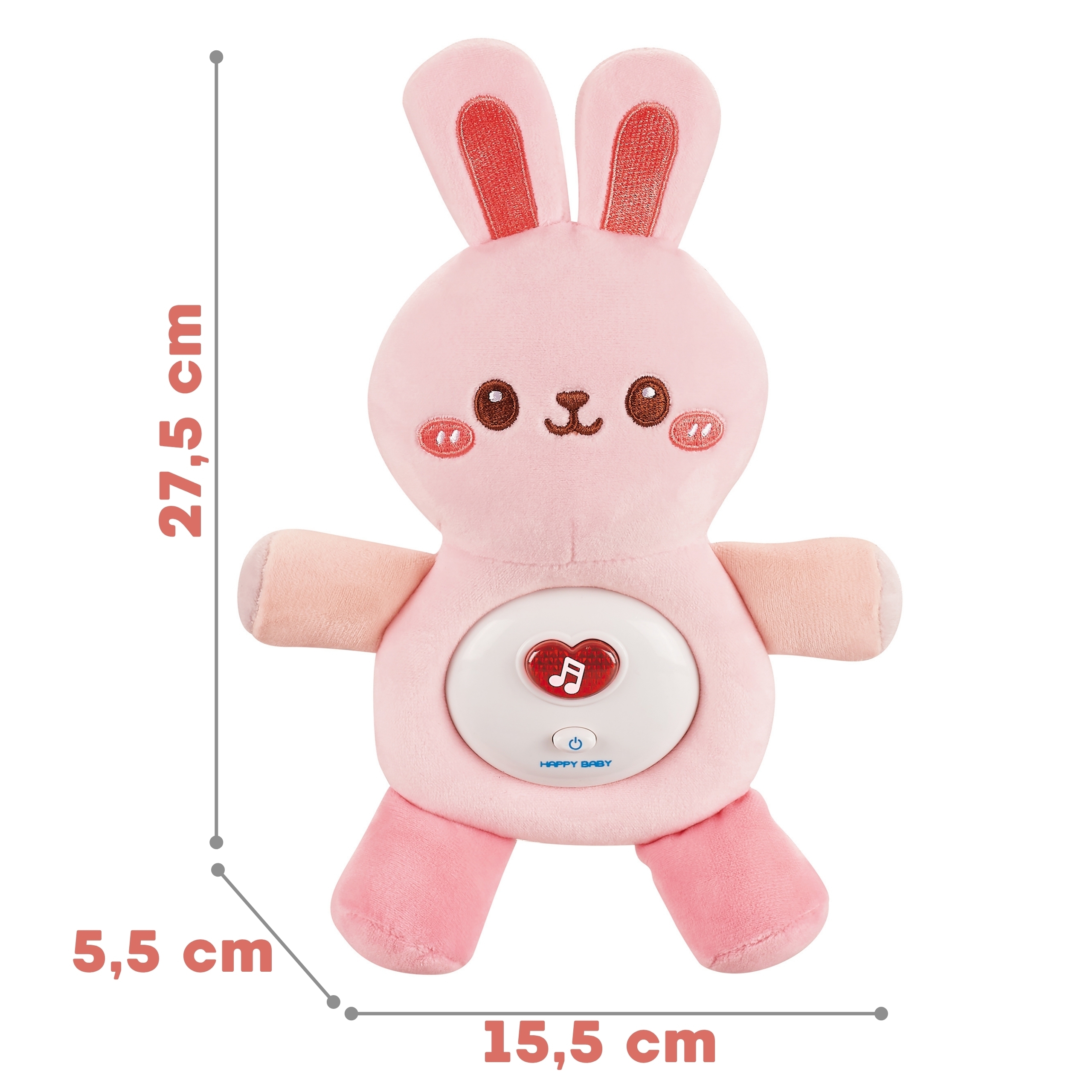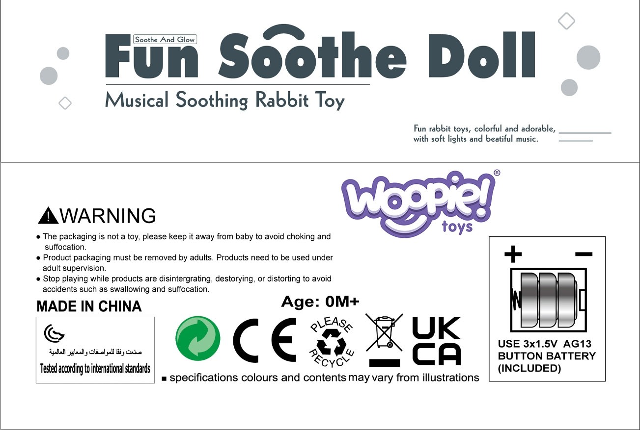 Interaktívny plyšový zajačik upokojí a uspí každé dieťa. Hračka je vhodná pre bábätká, preto je mäkká a vyplnená vatou. Navyše, plyšové zvieratko možno vyčistiť bezpečne a jednoducho (odstránením mechanizmu) bez obáv z akéhokoľvek poškodenia.