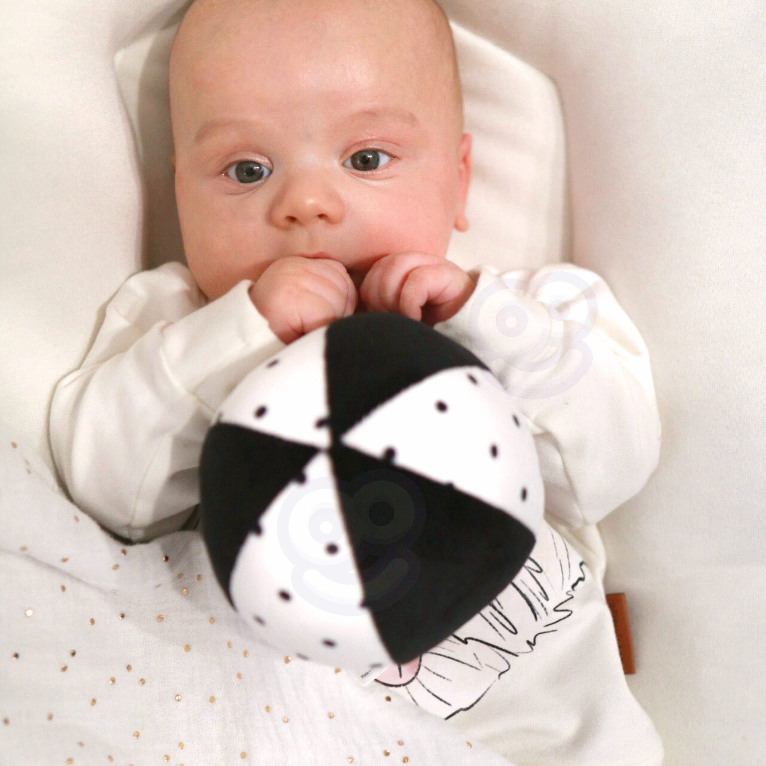 👁️ Podpora vývoja zraku: V prvých týždňoch vidí bábätko rozmazane. Kontrastné čierno-biele hračky sú to najlepšie, čo mu môžete ponúknuť pre tréning zaostrovania.