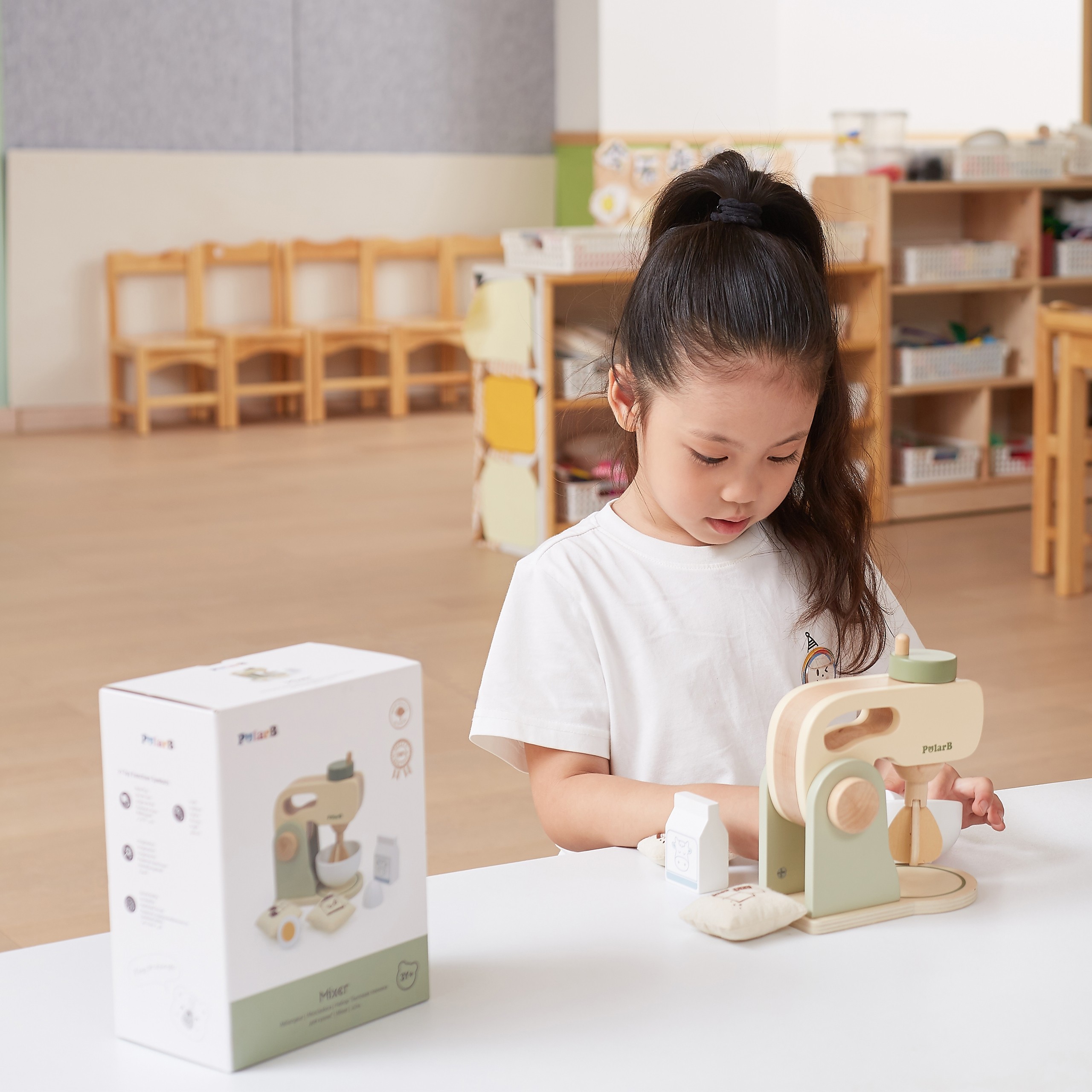 Detský drevený mixér bude perfektným doplnkom do kuchynky alebo tematického kútika v škôlke a umožní vášmu dieťatku zabaviť sa a zdokonaliť sa vo varení. Drevená hračka vám umožní hrať roly a bude mať tiež pozitívny vplyv na integráciu s ostatnými deťmi prostredníctvom spoločnej hry.