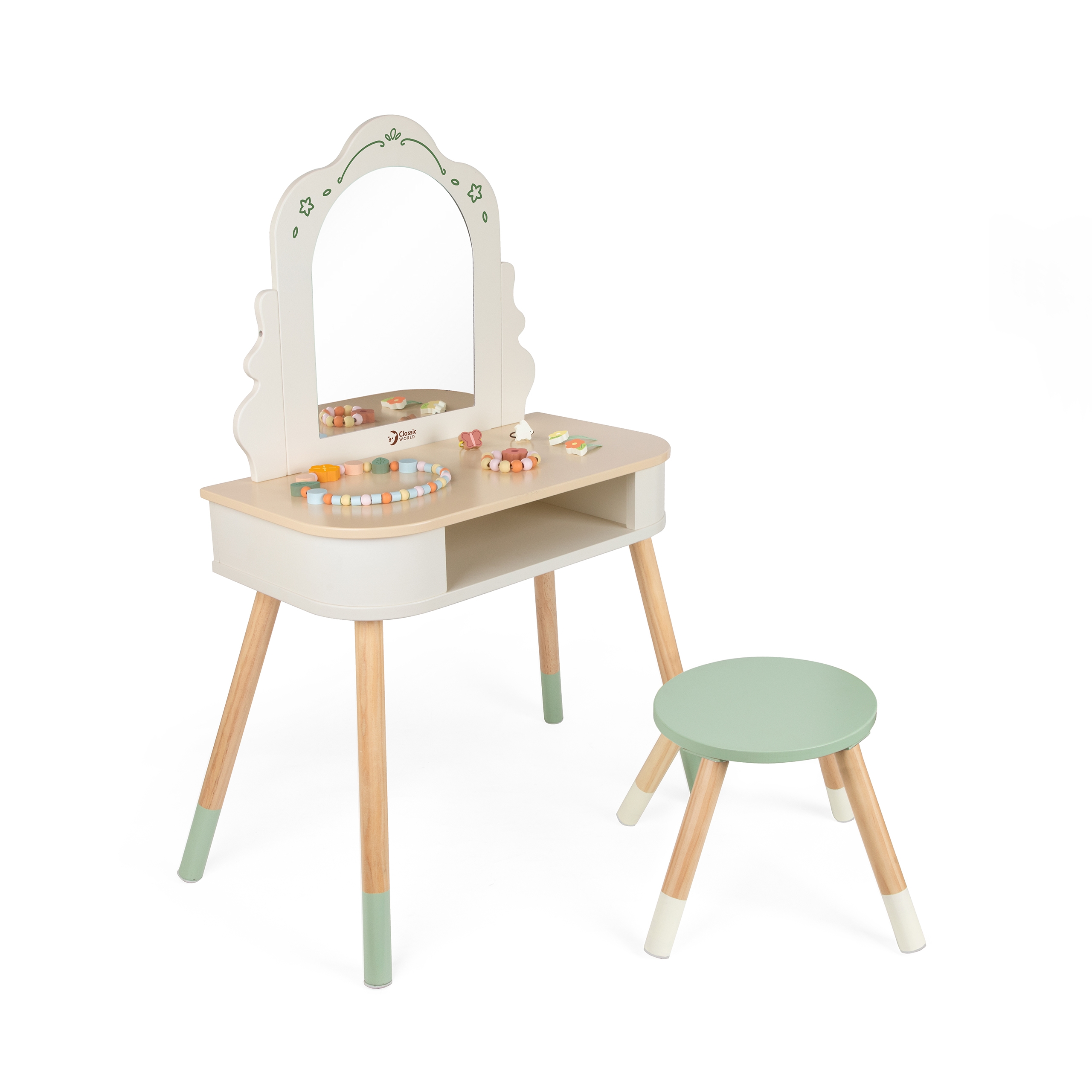 Toaletný stolík Classic World so zrkadlom bol navrhnutý špeciálne pre malé dievčatká, ktoré snívajú o vlastnom kútiku na líčenie a milujú sa obliekať. Sada obsahuje okrúhlu stoličku, zrkadlo a rôzne doplnky, ako napríklad náramok, sponky do vlasov a náhrdelník. S týmto toaletným stolíkom si deti môžu rozvíjať svoju fantáziu, napodobňovať dospelých a precvičovať si jemnú motoriku a zároveň sa zabávať.